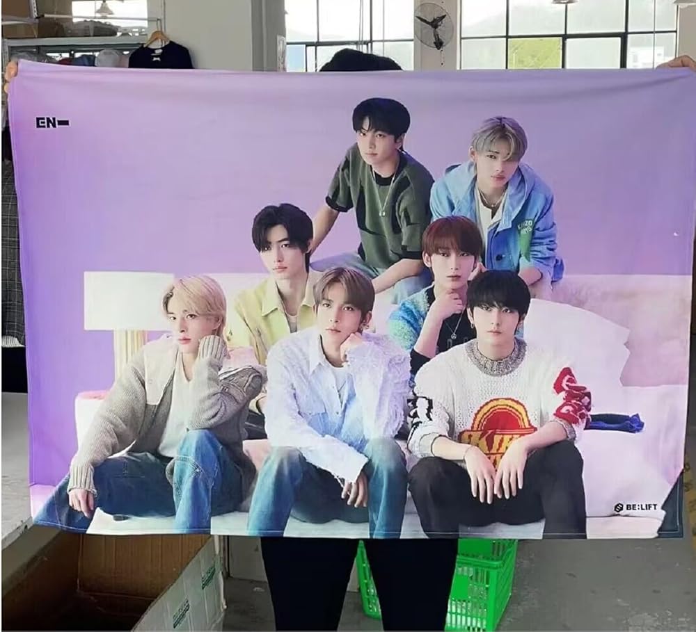 YiYiXiXi EN-HYPEN نسيج EN-HYPEN لافتة تعليق على الحائط ملصق حائط مفروشات لغرفة النوم وحفلات أعياد الميلاد (وردي)