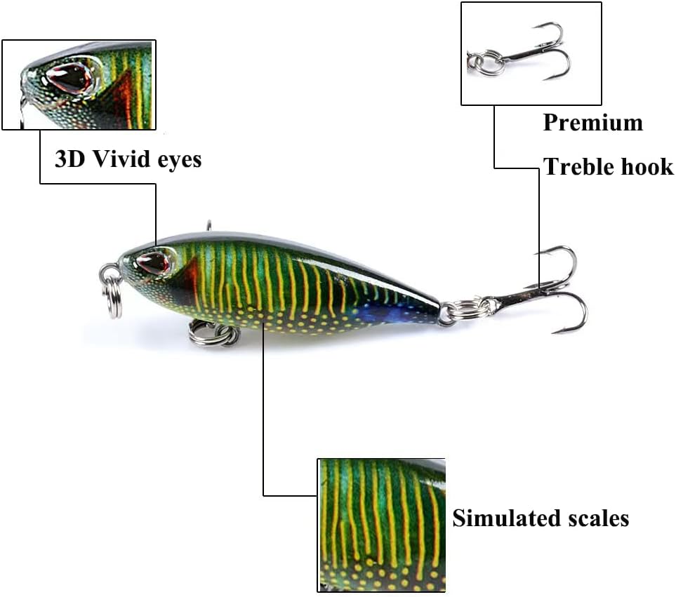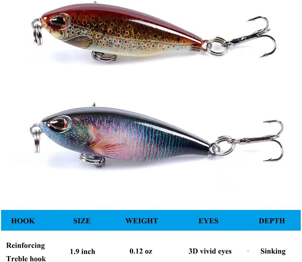طعم الطعم الغرق الصلب المتطابق مع جسم ملون بألوان واقعية زاهية وشكل الأسماك الطبيعي، مما ينتج مظهرًا حيويًا للأسماك، ويجعله جذابًا مميتًا للأسماك تتجول في حولك.