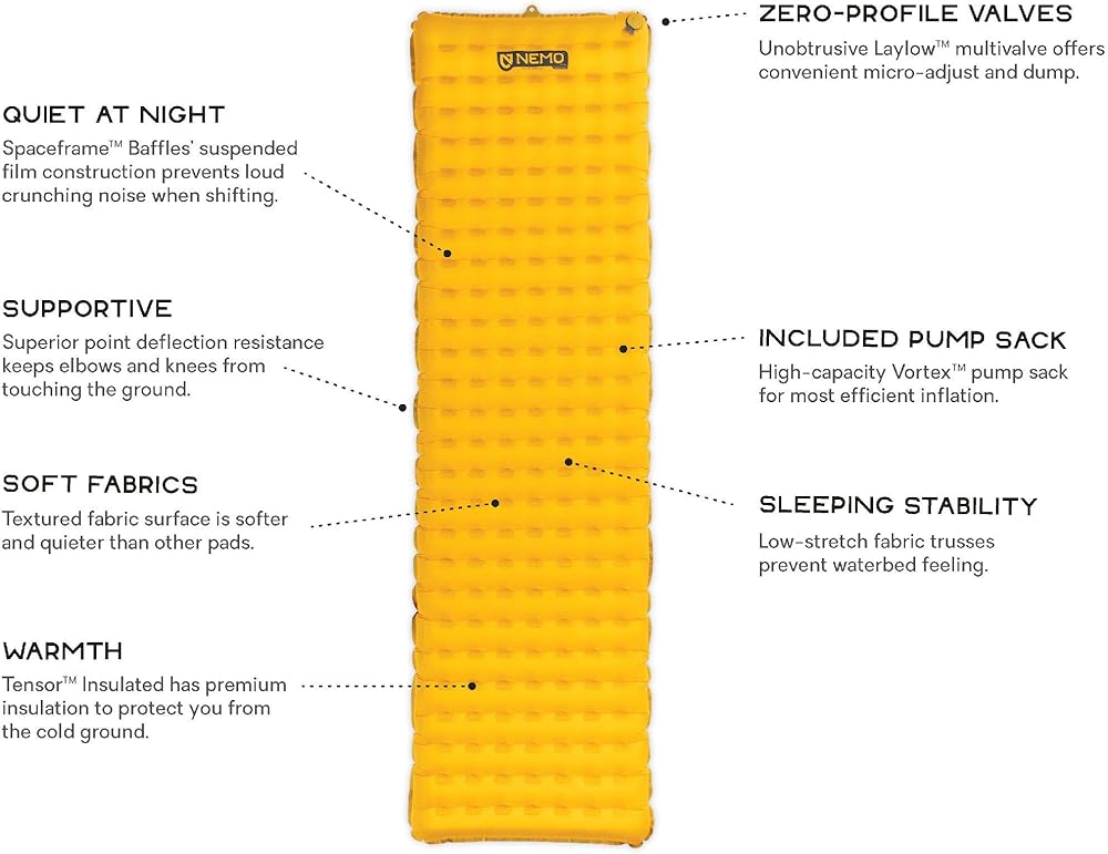 • أفضل صديق لحقيبة الظهر - الوسادة الأكثر تقنية في تشكيلة نيمو، تتجنب تينسور المفاضلة المعتادة بين الراحة وقابلية التعبئة؛ 3 انش من الدور العلوي المبطن، وسطح مريح، وعزل حراري إضافي للمرآة (النموذج المعزول فقط) يوفر نومًا مثاليًا بأقل وزن وحجم معبأ