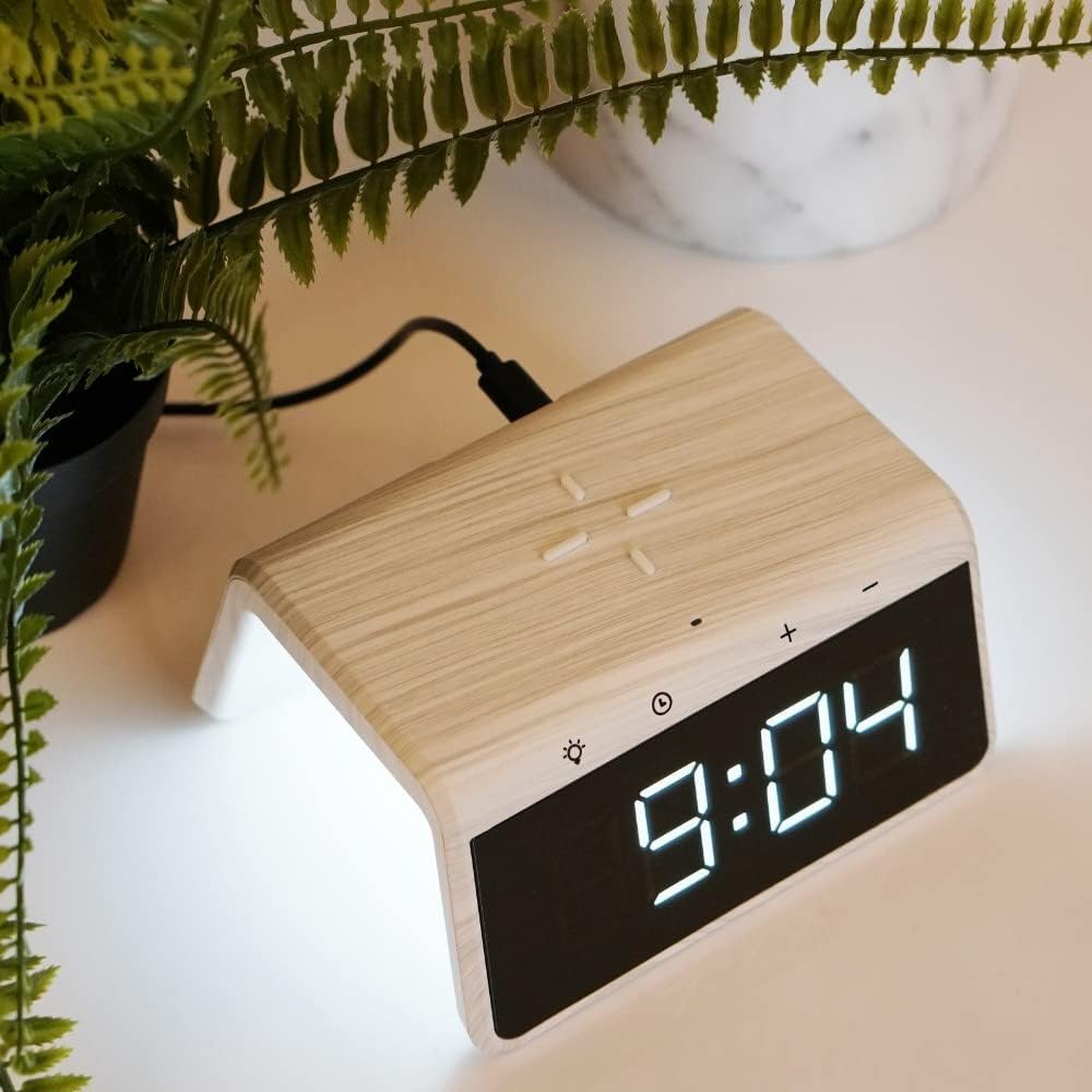 SPACE SAVER: This digital alarm clock also serves as a night light and dual phone charger in one modern device to help eliminate the clutter of extra devices and only takes up a single wall outlet!