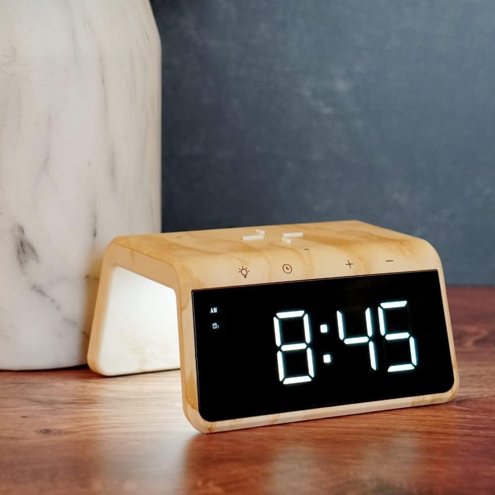 MODERN ALARM CLOCK: This fashionable digital alarm looks good on any nightstand, table, or shelf around the house! The large digital display, three adjustable brightness levels, and backup battery provides an alarm clock you can rely on.