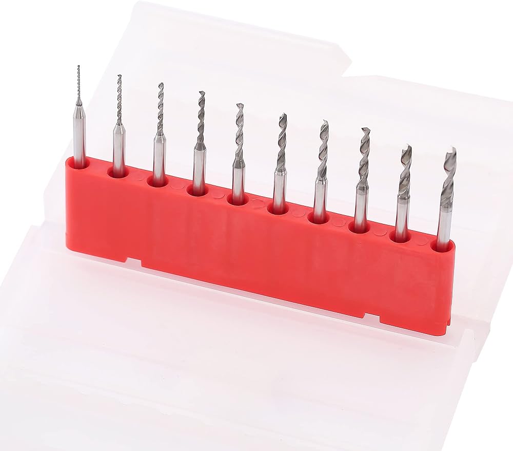 The BARFLE Spiral Router Bits set is a must-have for anyone who needs high-quality and precise routing for their woodworking or aluminum projects. These CNC router bits are designed to provide the user with a wide range of applications, including flattening router bit, surfacing router bit, and even end mill bits for precise milling. The set includes 10pcs 0.8-3.175mm titanium coated engraving milling cutters that are perfect for engraving and carving intricate designs on various materials such as wood, aluminum, and even circuit boards. With a 1/8 shank size, these CNC router bits are compatible with most standard milling machine accessories, making them an ideal choice for woodworking enthusiasts and professionals alike. Made of high-quality materials, the BARFLE Spiral Router Bits are durable and long-lasting. The CNC spiral router bits are designed to provide accurate and precise cuts, ensuring that your projects are of the highest quality. The end mill CNC router bits set is perfect for those who need to produce intricate designs or want to achieve a professional finish on their workpieces. Overall, the BARFLE Spiral Router Bits set is an excellent choice for anyone who needs to do precise and accurate routing work. These CNC router bits are versatile, durable, and perfect for woodworking, aluminum, and even circuit board projects. Whether you're a professional or a DIY enthusiast, this set of CNC router bits is a must-have in your toolbox. The BARFLE Spiral Router Bits are the ultimate solution for all your CNC routing needs. This top-quality set of routing bits includes everything you need to produce precise and professional-grade cuts in virtually any material, from wood to aluminum. With a range of different bits included, this set can handle any routing job you throw at it. The flattening router bit and surfacing router bit are perfect for smoothing out rough surfaces, while the end mill bits and engraving milling cutter are ideal for intricate detail
