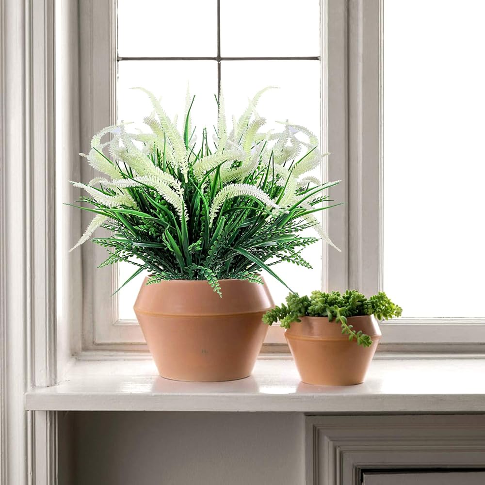 Artificial flowers for outdoor plastic plants can be placed outdoors, on the front porch, backyard, front yard, garden, balcony, window sill, office, etc., UV RESISTANT and NEVER FADE