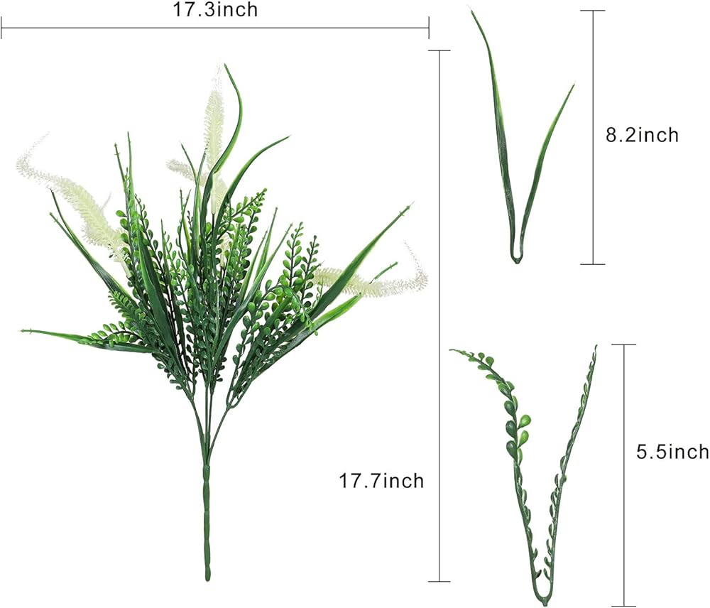 Each artificial flowers for outdoor plastic plants measures 18” long, 12” wide, has 5 flexible stems and bushy leaves