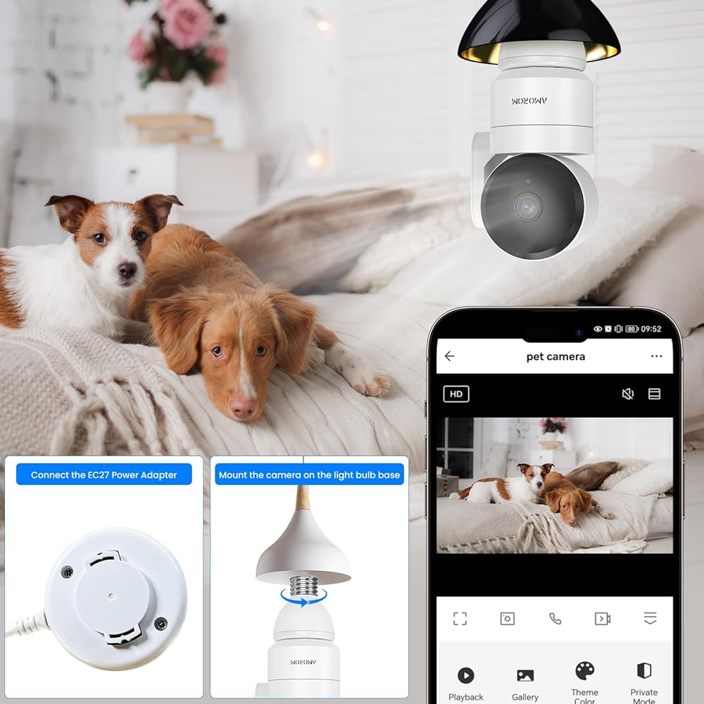 【Compatible with AMOROM P1 Security Camera】The AMOROM P1 Security camera includes a power adapter and mount base. Additionally, the EC27 Bulb connector can also be used as a camera mount to connect with the bulb base. you can find amorom p1 security camera by searching "B0C6KQ3Y55".