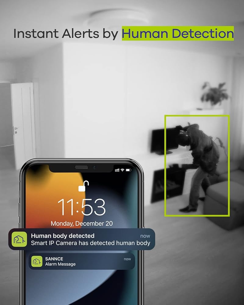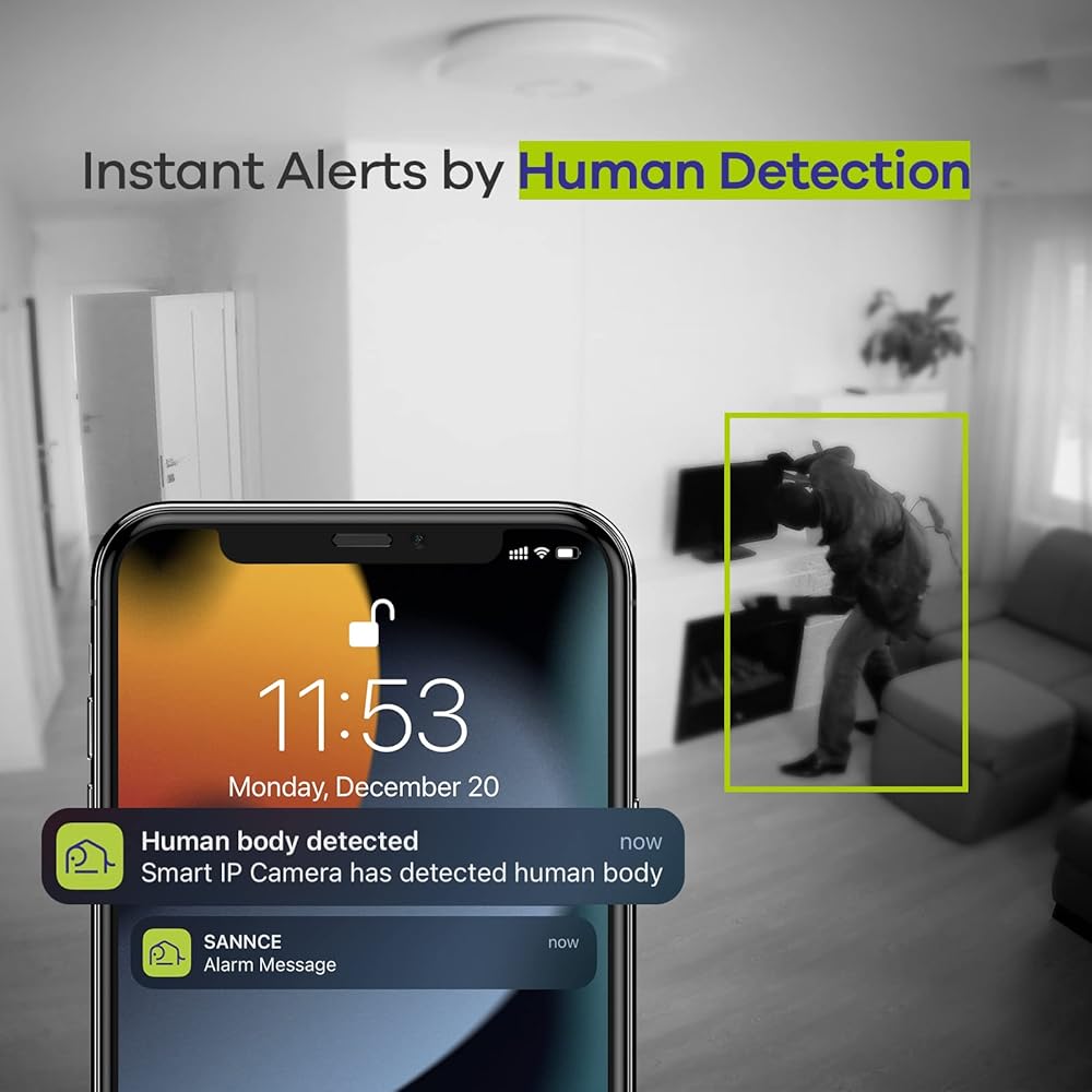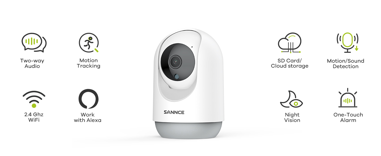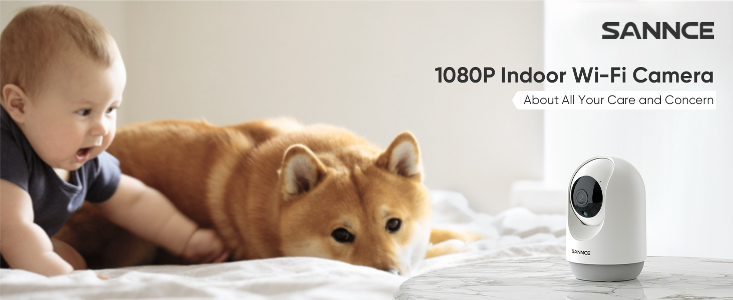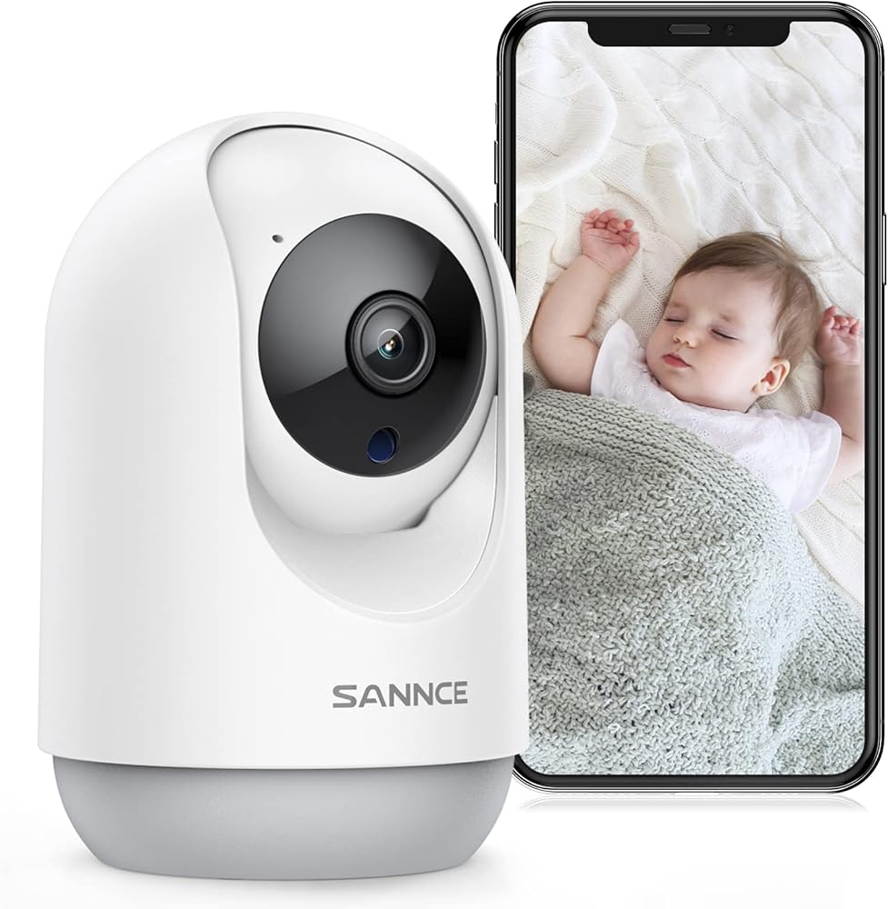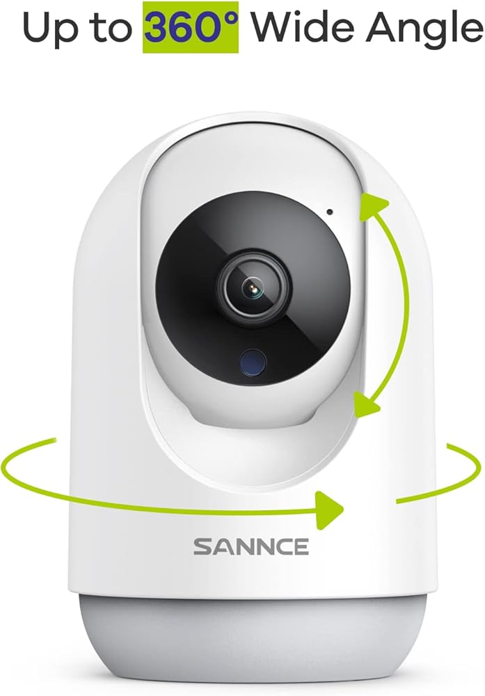 كاميرا SANNCE IP كاميرا أمان ذكية قابلة للإمالة واي فاي، كاميرا 1080 بكسل داخلية للحيوانات الأليفة وكاميرا 360 درجة مع صوت ثنائي الاتجاه، كشف الحركة البشرية، إنذار بلمسة واحدة، تخزين بطاقة Cloud وSD، تعمل مع Alexa