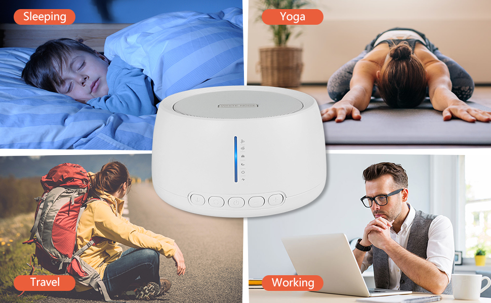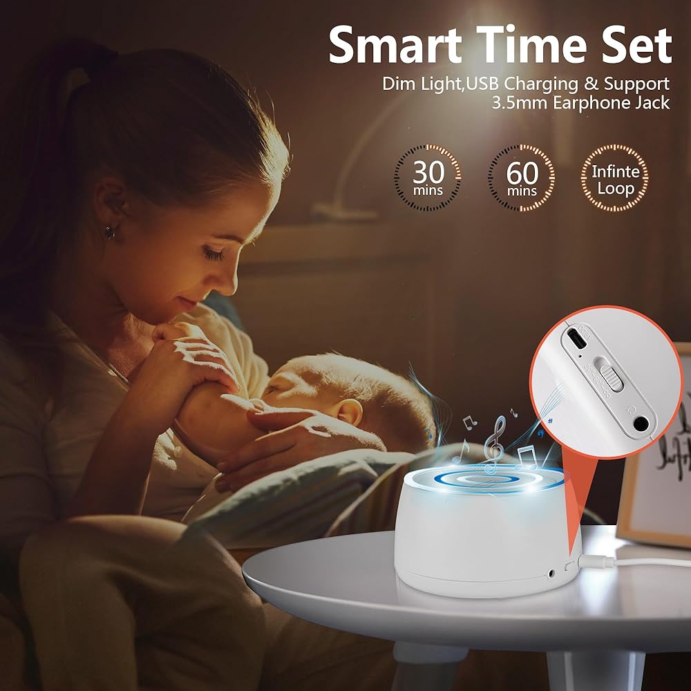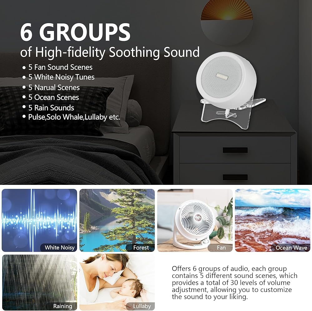• خيارات صوت متعددة الاستخدامات: توفر آلة الصوت ذات الضوضاء البيضاء الخاصة بنا 6 مجموعات من الصوت، تحتوي كل مجموعة على 5 مشاهد صوتية مختلفة، مما يوفر إجمالي 30 مستوى من ضبط مستوى الصوت، مما يسمح لك بتخصيص الصوت حسب رغبتك. مقترنة بأصوات مهدئة عالية الدقة مثل الضوضاء البيضاء والمطر والمحيط والأصوات الطبيعية وأصوات المروحة، فهي مناسبة جدًا لخلق جو نوم مريح.