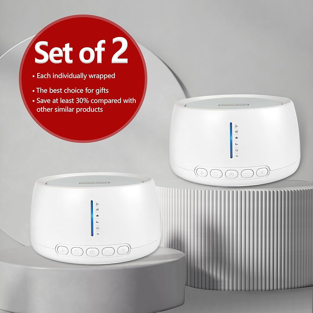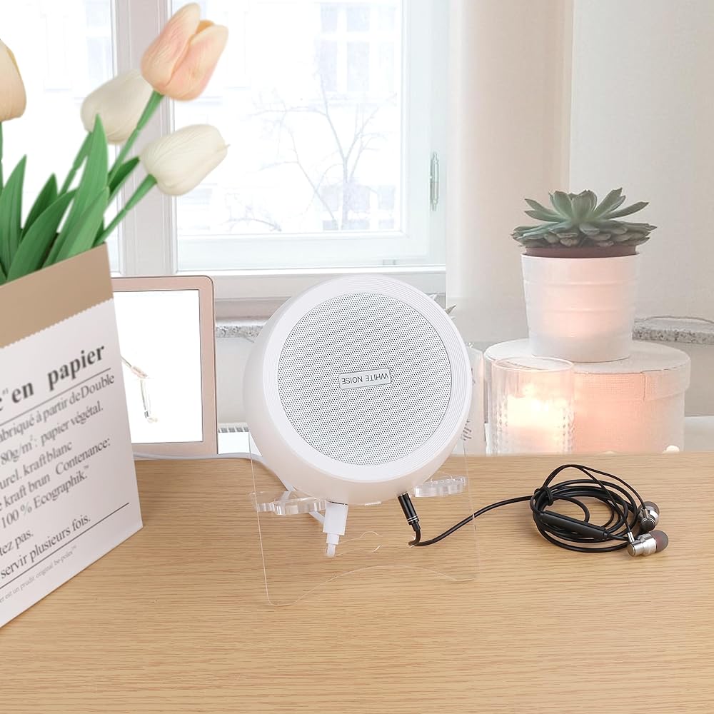 مجموعة الة ضوضاء بيضاء مكونة من قطعتين مع حامل اكريليك جمالي، مكبر صوت خارجي مدمج اثقل، 30 صوت طبيعي مهدئ للنوم، 3 مؤقتات تعمل بتيار متردد او USB، الة صوت للاطفال والكبار