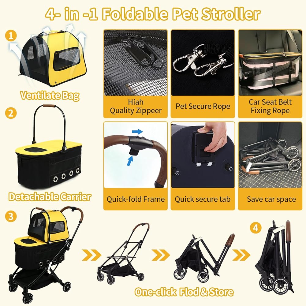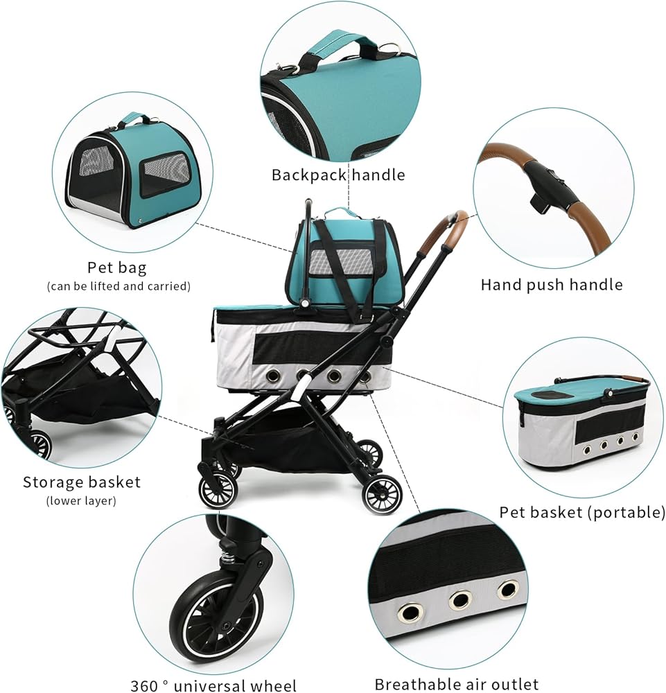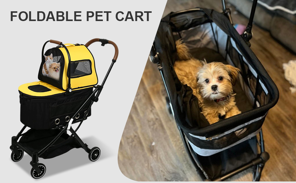 💕【سهلة التجميع】تأتي عربة الحيوانات الأليفة مع تعليمات تركيب واضحة، سهلة التجميع، وظائف طي وفرامل مريحة، قابلة للفصل، وتأتي مع حزام للنقل.