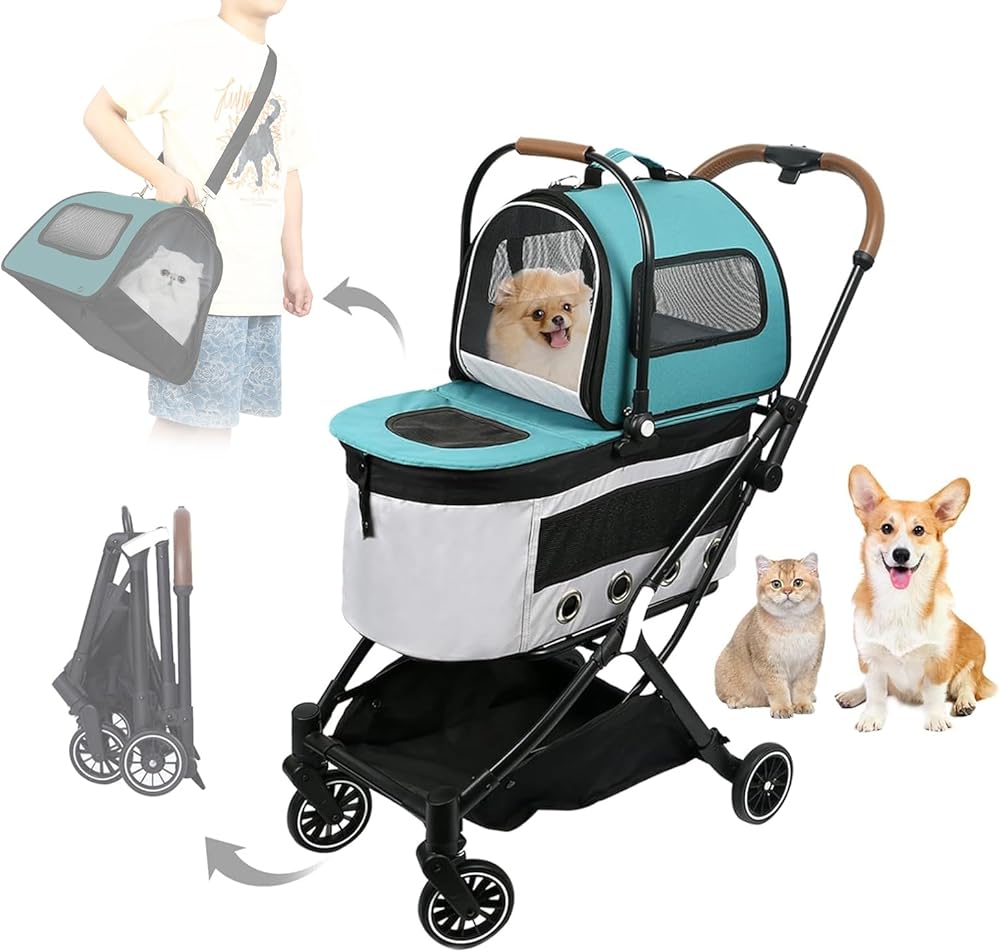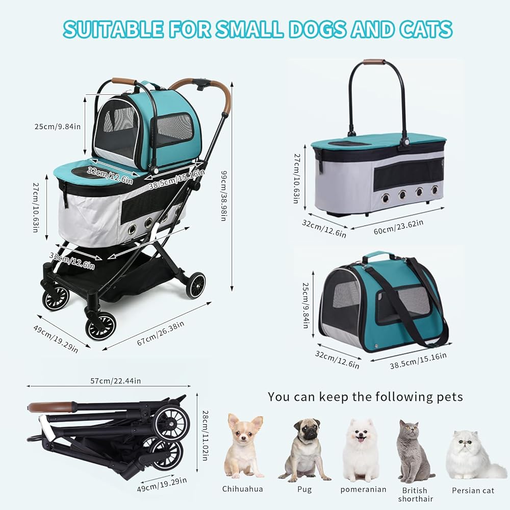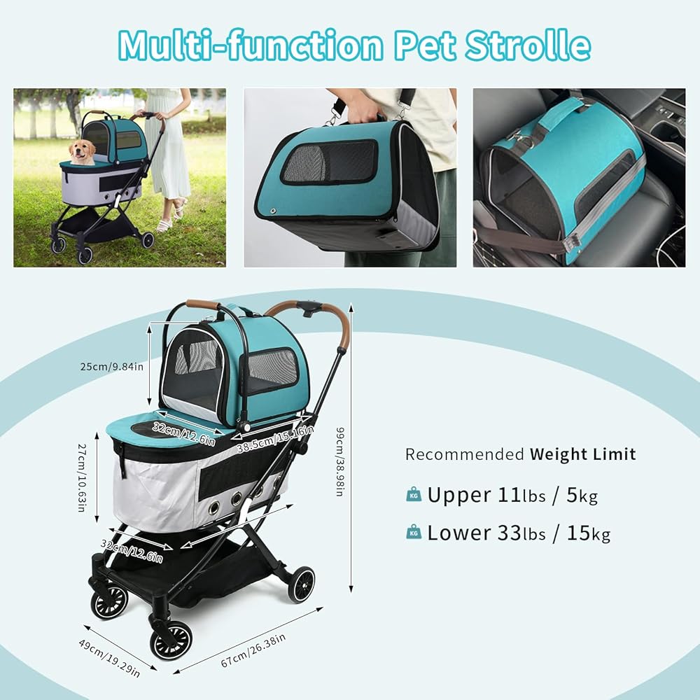 💕(22 رطل + 33 رطل) عربة الكلاب لكلبين سهلة نقل الحيوانات الأليفة، وكلبين أو قطط صغيرة ومتوسطة الحجم والحيوانات الأليفة الأخرى في حدود 22 رطل + 33 رطل، مناسبة جدًا للزيارات البيطرية والمشي في الهواء الطلق، مما يسمح للحيوانات الأليفة الصغيرة بالاستمتاع بالهواء النقي. وأشعة الشمس.