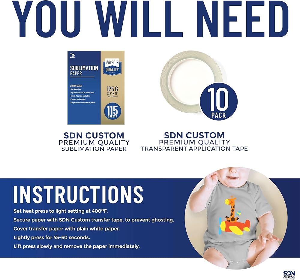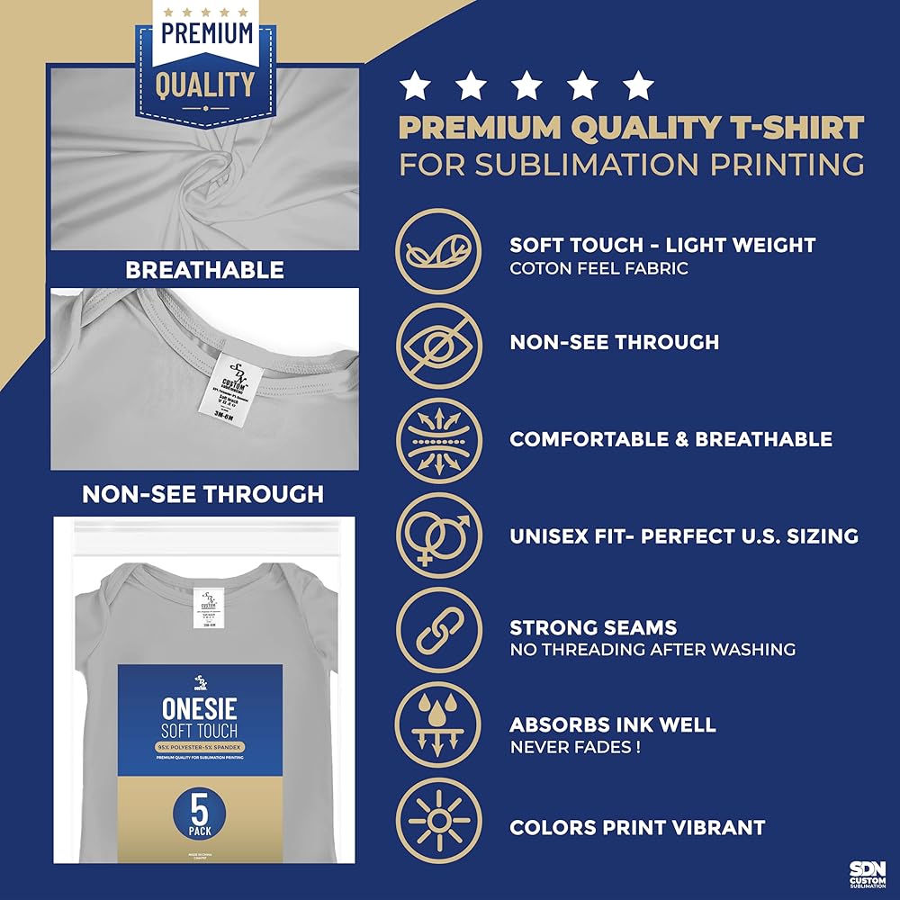 • 𝐇𝐈𝐆𝐇-𝐐𝐔𝐀𝐋𝐈𝐓𝐘 𝐂𝐎𝐀𝐓𝐈𝐍𝐆: SDN Custom Sublimation Blanks Grey Bodysuit is coated with a special sublimation coating that enhances the longevity and vividness of the prints. This enables you to create beautiful designs on bodysuits according to your personal style for your babies. Unlike regular white bodysuits, these bodysuits are specifically tailored for sublimation printing.