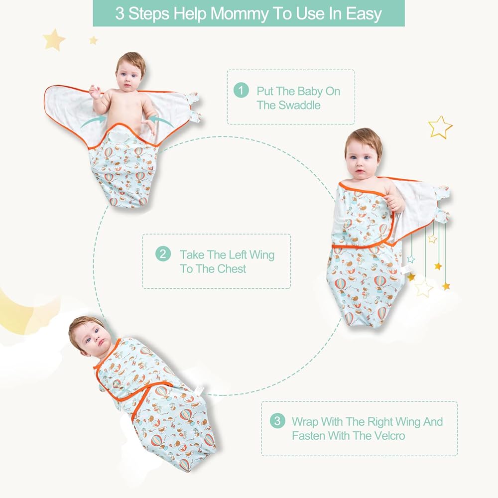 Convenient to use-easier to use than traditional baby blankets, allowing you to wrap your baby quickly, its design includes a leg pocket and adjustable hook and loop tags, which can be firmly fixed on the baby's chest, bringing comfort and peace of mind A sense of fit.