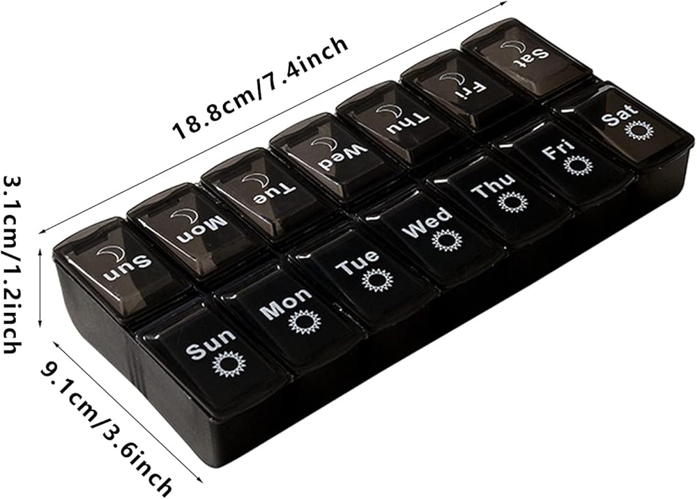 Size: AM PM pill case size is about 18.8x9.1x3.1CM/7.4x3.6x1.2 inches,enough to put into your bag,and convenient to take when you travel or do outdoor activities.