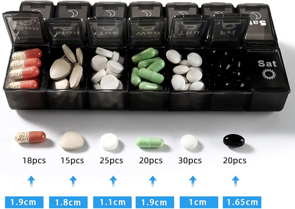 1. Clear pattern is easy for you to distinguish the compartment,no worries about taking the wrong pills