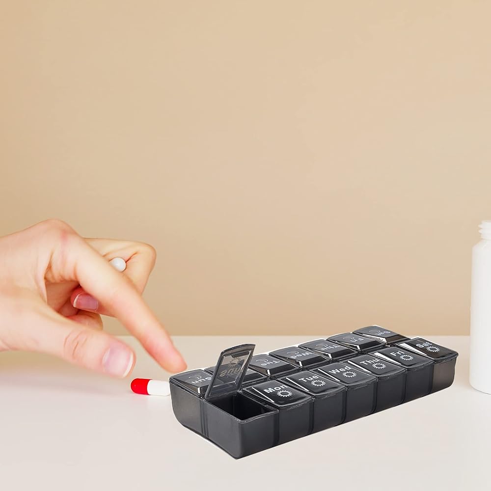 4. Pill box twice a day are made of food-grade PP plastic,BPA-free and safe for use