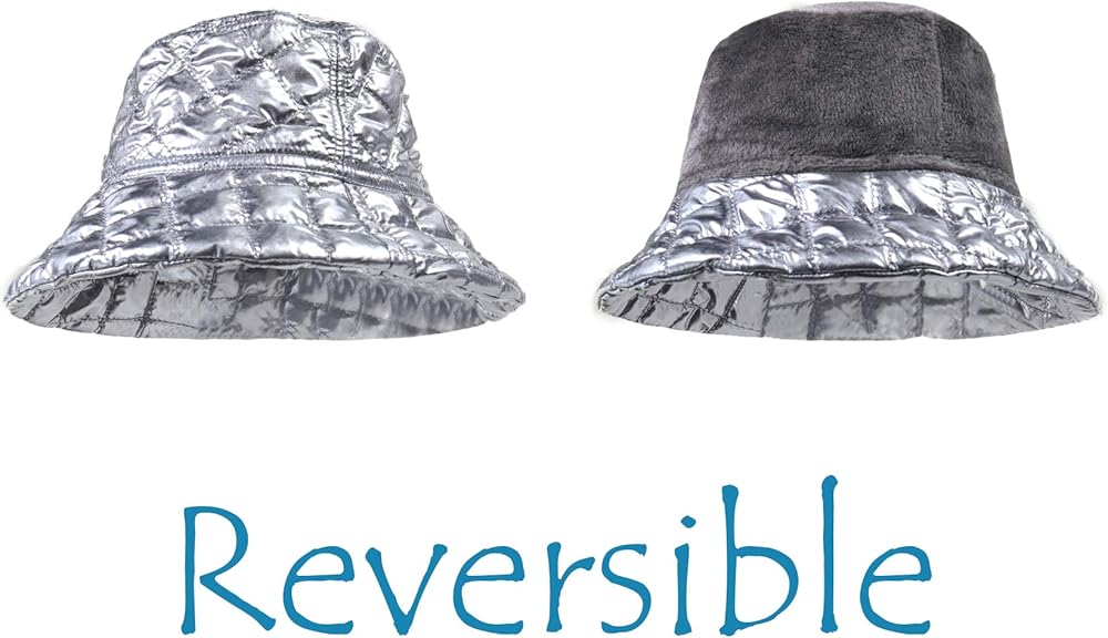 Design Point: Pilipala Women's Winter Bucket Hat Shiny Metallic Reversible Warm Fishing Boonie Fashion Wide Brim Cap Unisex