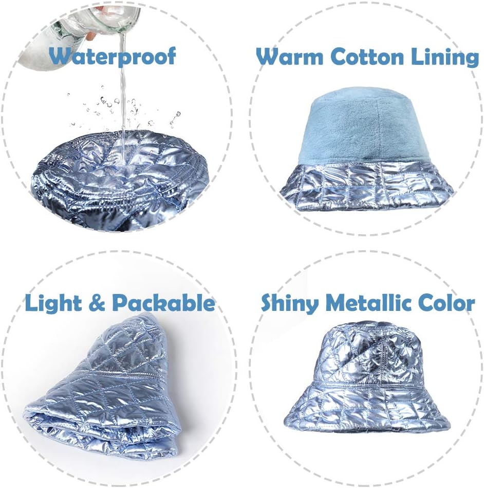 WARM & LIGHTWEIGHT - Compared with ordinary cotton bucket hats, our shiny metallic bucket hats are better at keeping warm and windproof while block sun UV rays. These women's bucket hats are foldable and packable, can be easily carried inside your handbag or tote.