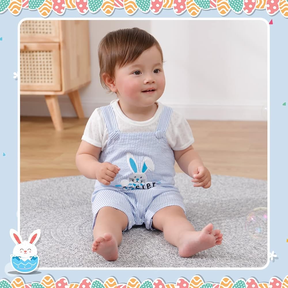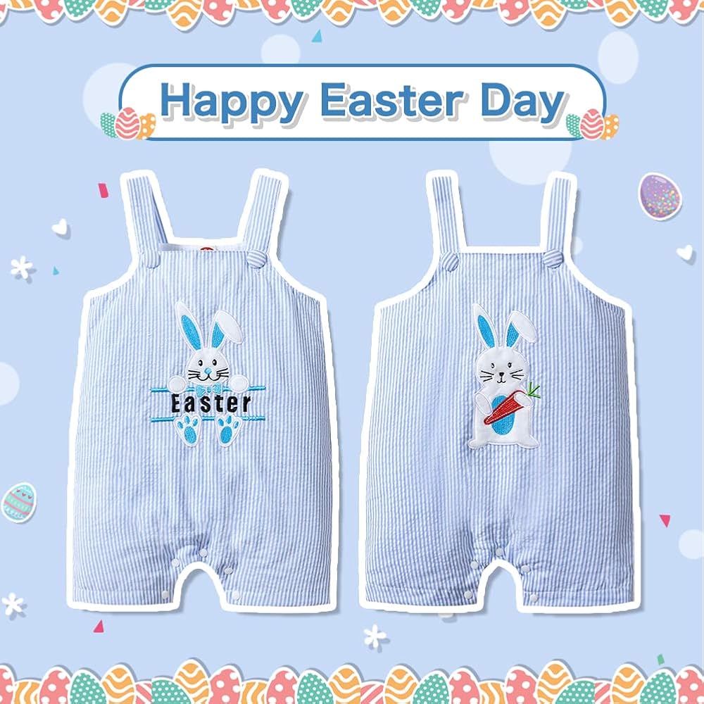【تصميم أنيق】تم تصميم مجموعة ملابس عيد الفصح اللطيفة والمضحكة للأولاد الصغار بخط رقبة على شكل ظرف. النمط -- الأرنب والحرف -- عيد الفصح أمام الرومبير رائع وجميل، مما يجذب الطفل الصغير. وأرنب عيد الفصح -- رسول يعطي بيض عيد الفصح للأطفال، وهو ما يتوافق تمامًا مع عيد الفصح. تصميم بإبزيم يسهل على الأمهات تغيير الحفاضات وارتداء الملابس بسرعة وسهولة.