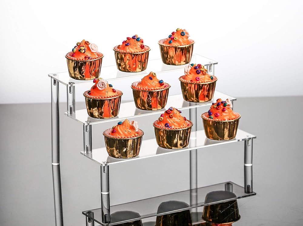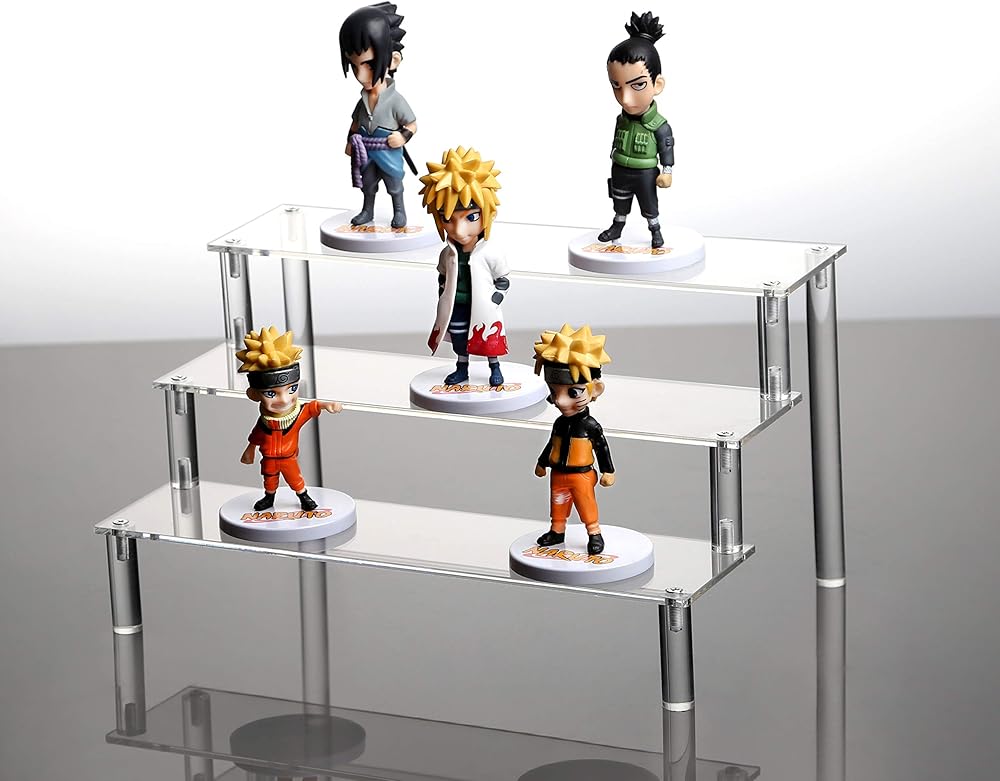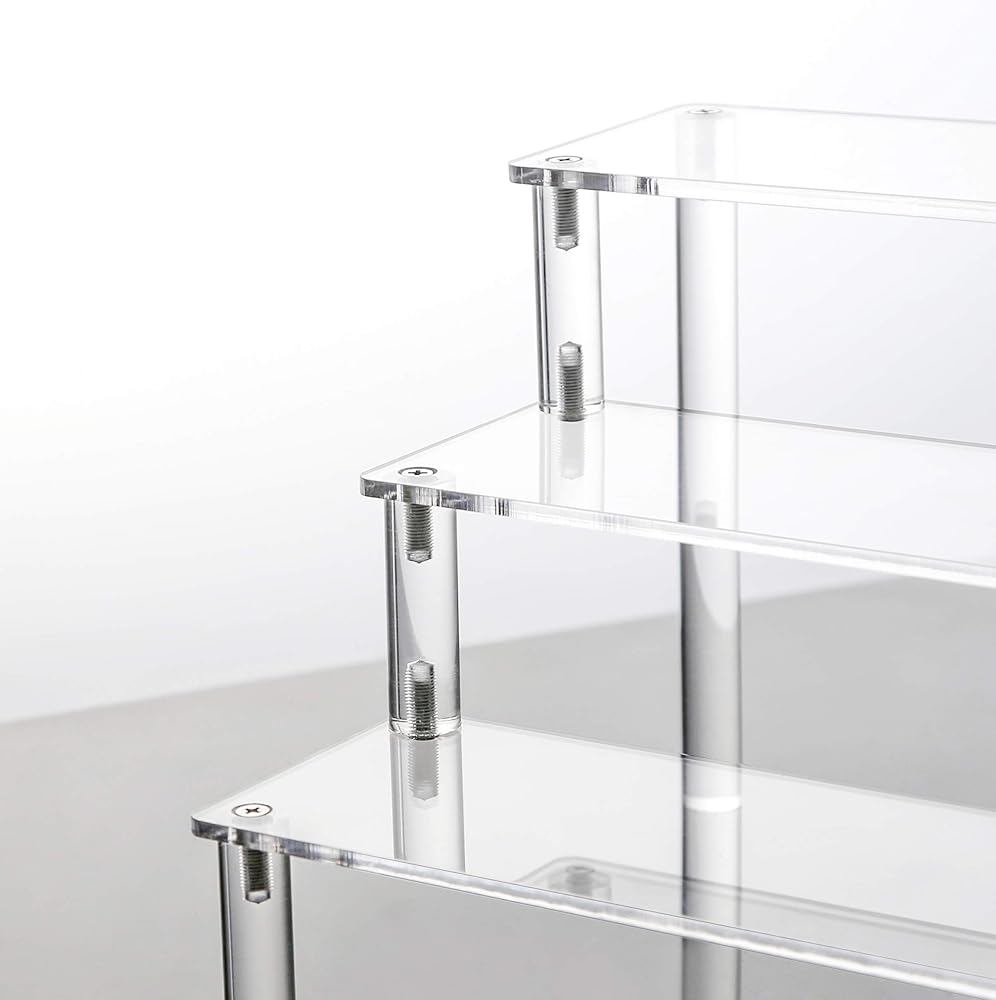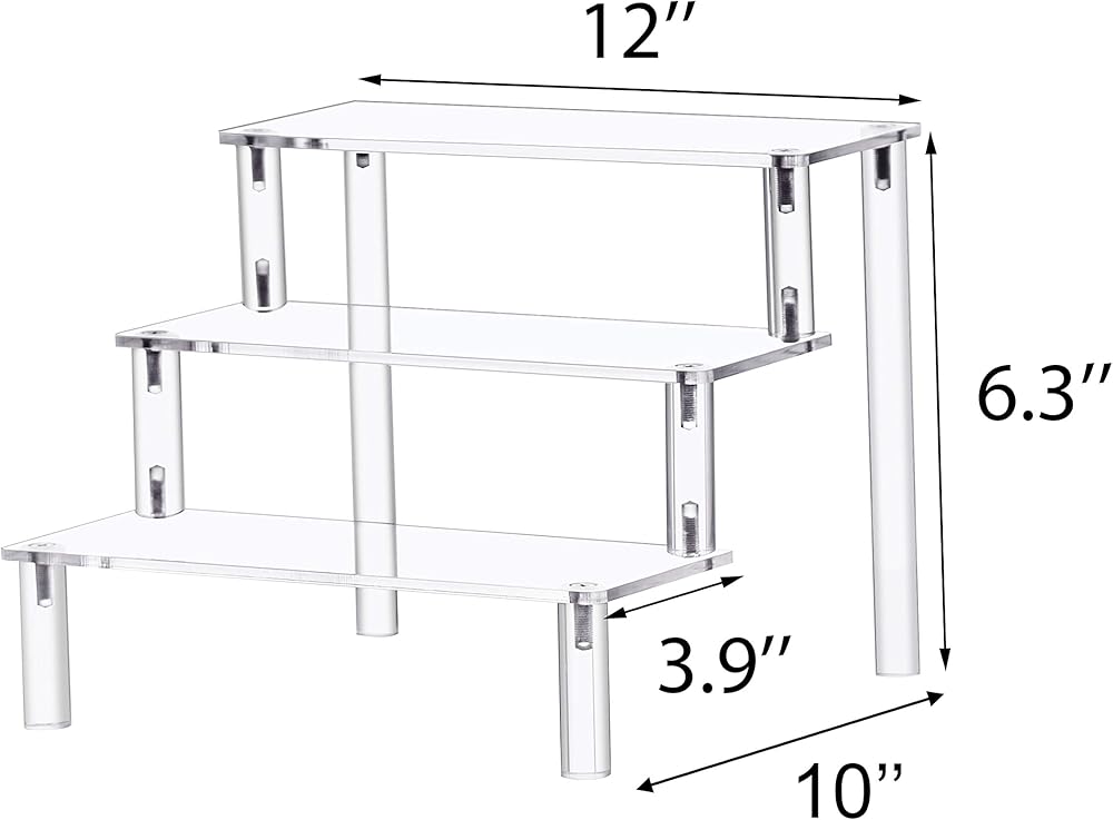 رف عرض من الأكريليك من Jusalpha مكون من 3 طبقات لشخصيات Amiibo Funko POP، وحامل الكعك، وحامل عرض الطعام، وخزانة، و3 خطوات للديكور والمنظم (مجموعتان)