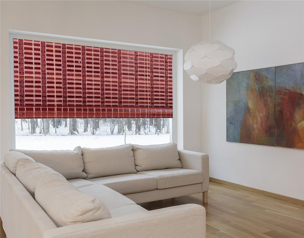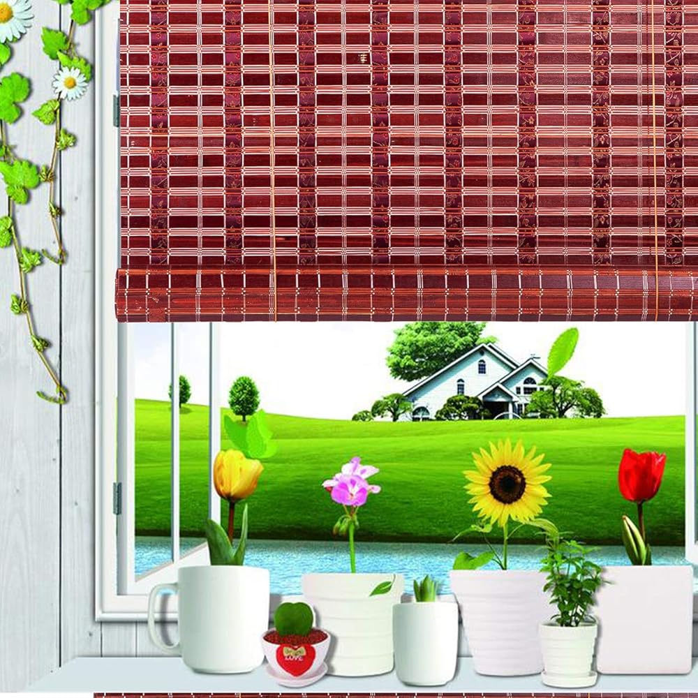 ستائر نوافذ من الخيزران الطبيعي من آسيان هوم، ستائر للشمس باللون العنابي WB-SUN319 (عرض 60 × ارتفاع 72)