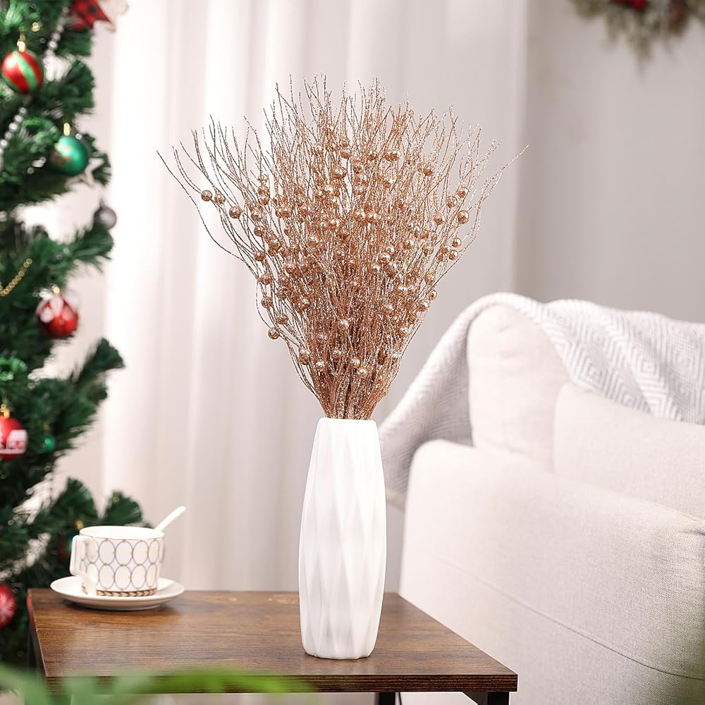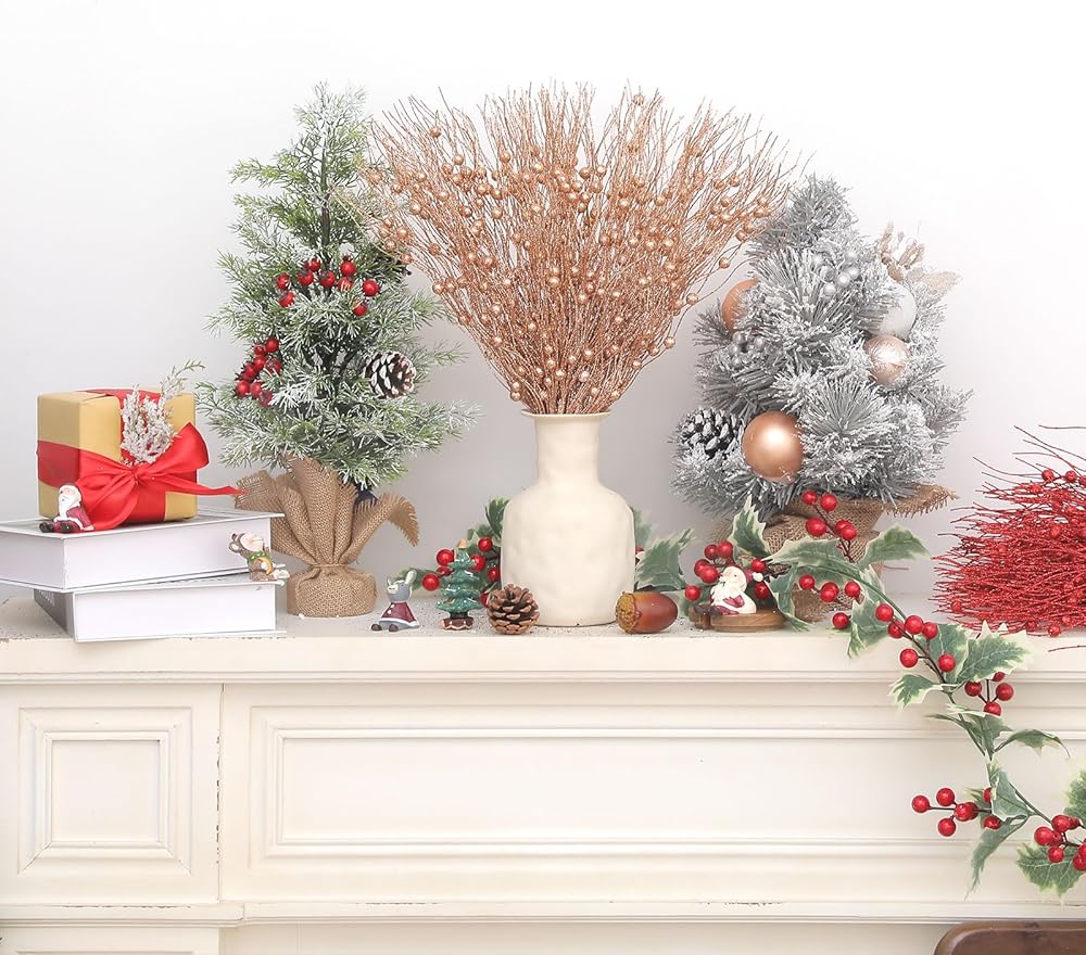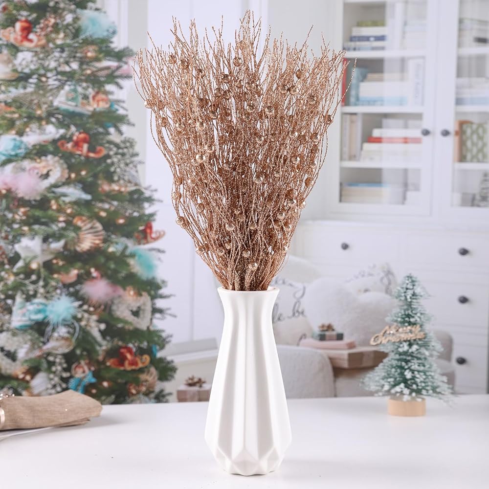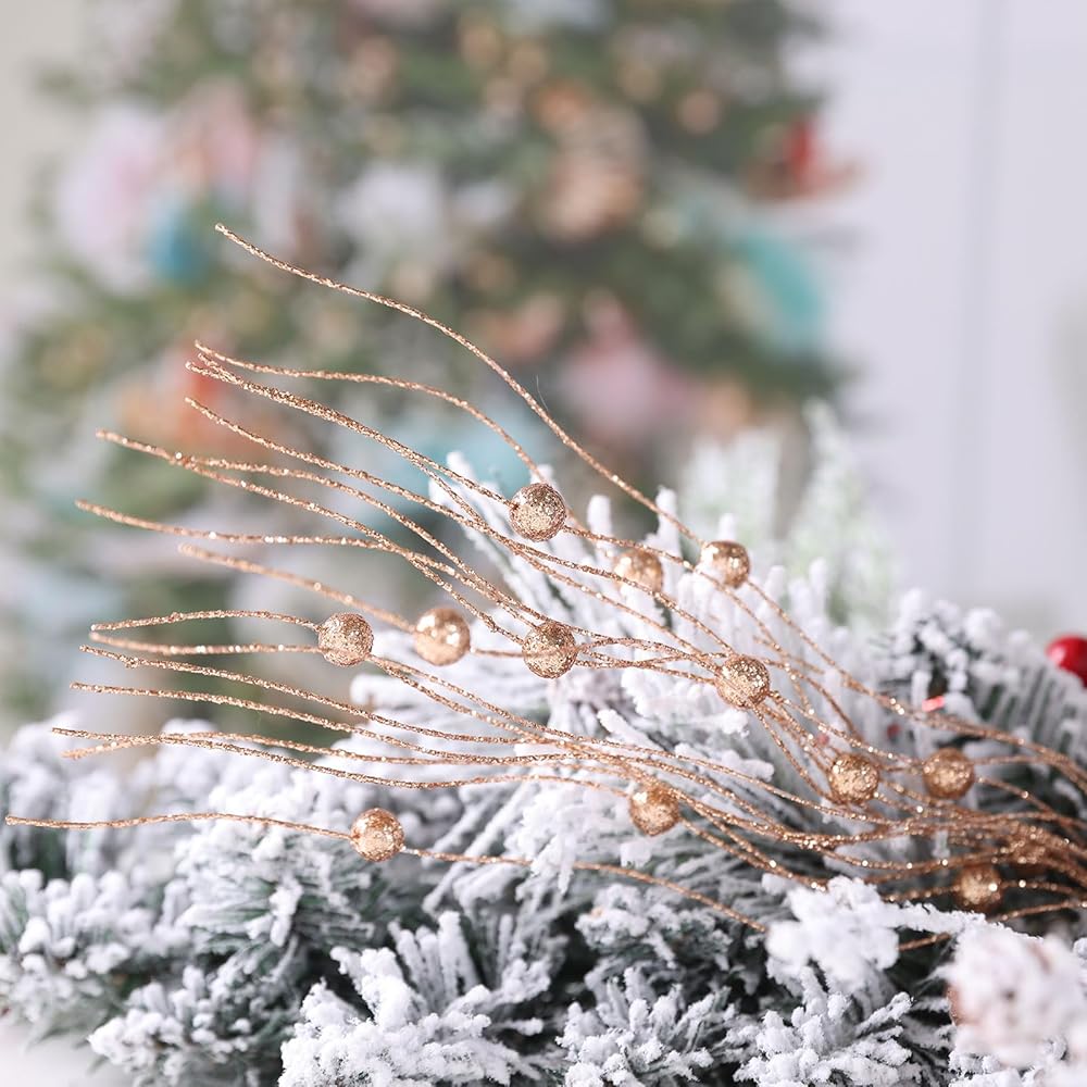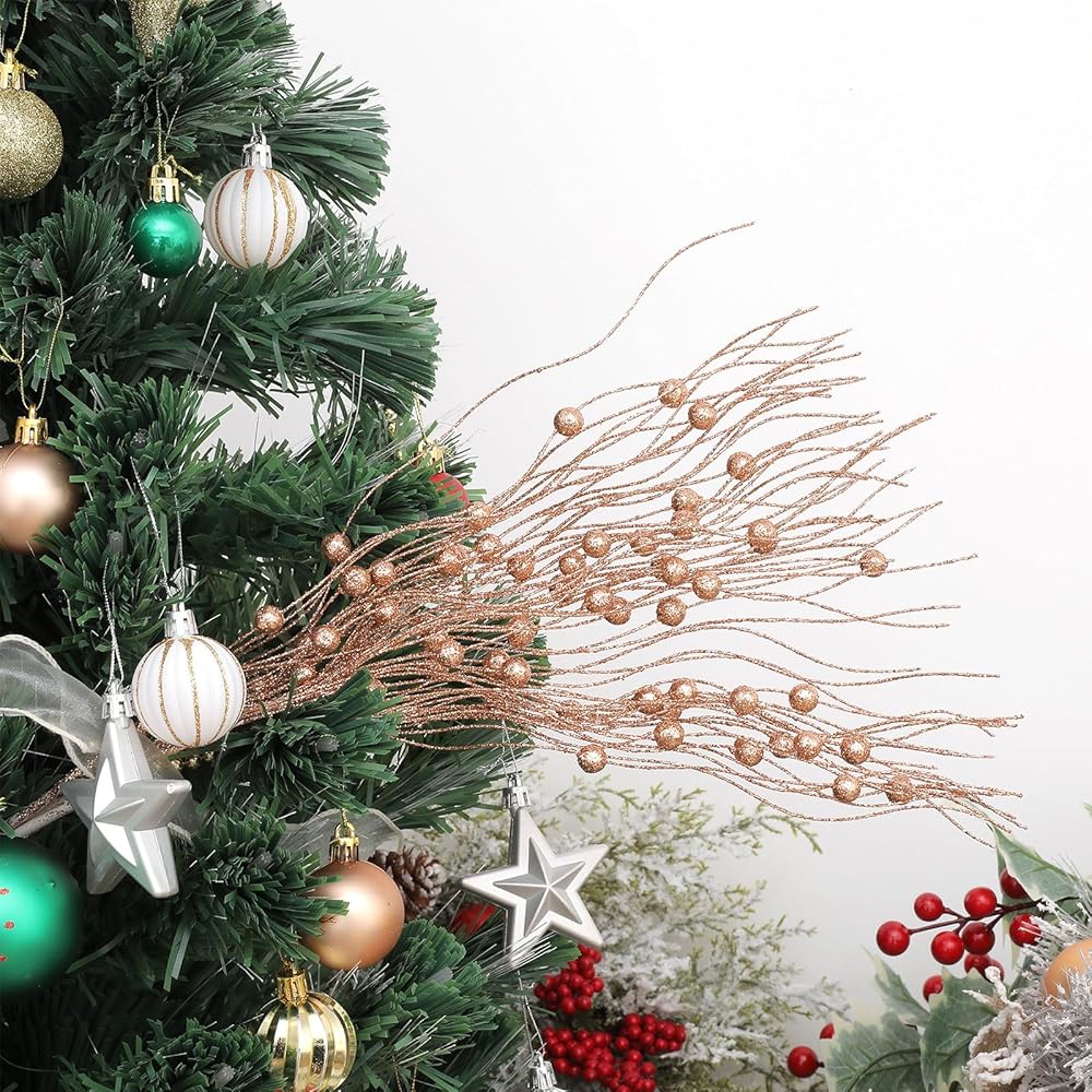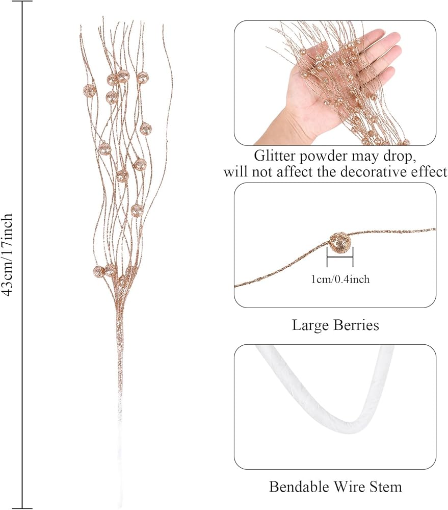 U'Artlines 24 قطعة من سيقان التوت اللامعة لعيد الميلاد، 17 بوصة توت ذهبي وردي سيقان عيد الميلاد الاصطناعية عيد الميلاد اختيارات الزهور لإكليل شجرة عيد الميلاد DIY الحرف اليدوية ديكور المنزل لحفلات العطلات، ذهبي وردي