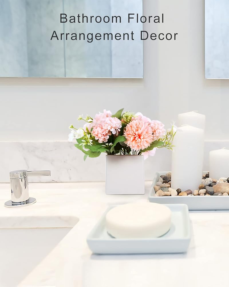 باقة الزهور الصغيرة: يبلغ ارتفاع تنسيقات الزهور الصناعية مع المزهرية 7.08 بوصة، والعرض 8.66 بوصة. ديكور الزهور الصناعية مع المزهرية مثالي لأي مساحة صغيرة دون أن تشغلها عند استخدامها مرة واحدة! الوزن الإجمالي 0.46 رطل، خفيف الوزن ورقيق. إنها أيضًا هدية رائعة للعطلات، مثل عيد الشكر والكريسماس ورأس السنة وعيد الحب وعيد الأم وهدايا الترحيب بالمنزل الجديد.