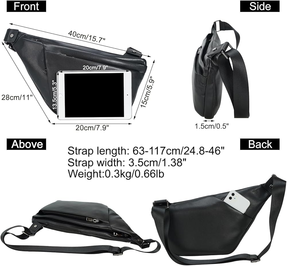 Simple casual characteristic stylish and practical design leather chest shoulder bag, suitable for casual or formal carry. It's a very good chest shoulder bag for working, traveling, school and daily using.