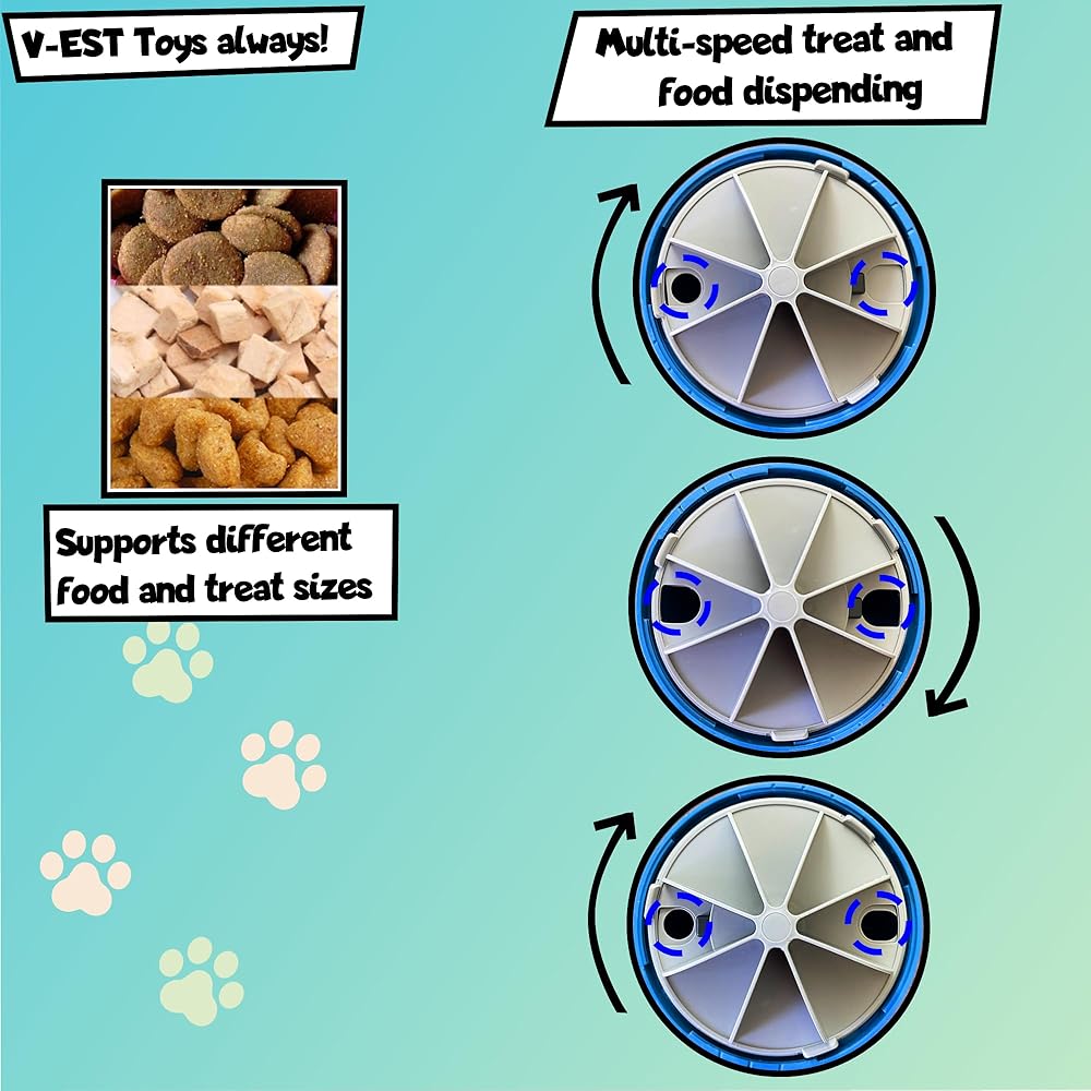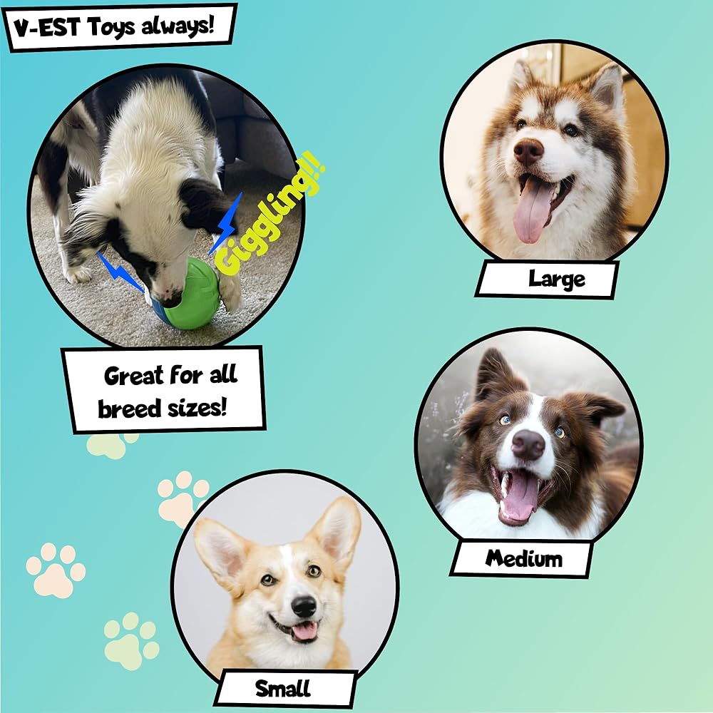 Introducing V-EST Toys - Treat Dispensing Dog - the perfect puzzle toy and treat dispensing ball for your puppy, large, and medium dogs! Not only does it bring together the best of all worlds – toys, food puzzles, treat dispensers, and dog toys – but it is made to be durable enough to handle tough chewers. Your furry friend will have hours of fun as they play with the toy and figure out how to get at the tasty treats inside. The innovative design of this treat dispenser allows your pup to enjoy maximum engagement in their playtime while keeping them occupied mentally and physically. With multiple compartments for treats or kibble, your pup can figure out how to rotate, push, or slide the toy in order to make it tumble open and release their goodies. Theyll stay busy as they explore the puzzle balls one-of-a-kind shape and design. Plus, this toy can easily be washed and refreshed with new treats quickly so that your pup will never run out of fun things to do! Whether youre looking for a gift for your own pet or a friends furry family member, you wont go wrong with V-EST Toys - Treat Dispensing Dog! It encourages interactive behavior by provoking natural predatory instincts while simultaneously providing mental stimulation through problem solving. So why hesitate? Snag one (or several) today and let your pup join the fun!