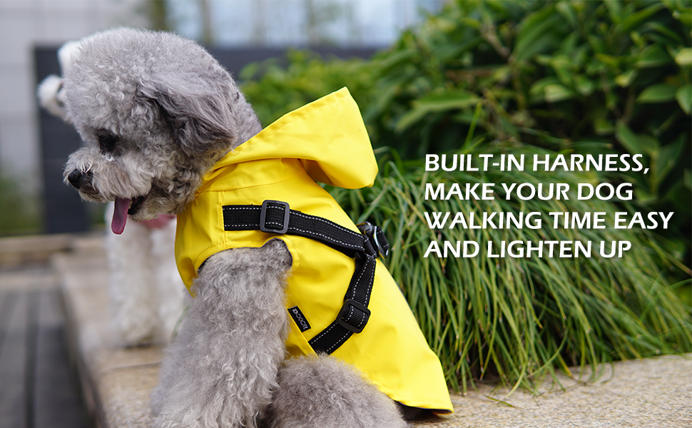 • سرج مدمج لسهولة الاستخدام: مع تصميم السرج المدمج، يمكنك ربط الزمام به مباشرة. لا حاجة لارتداء الحزام داخل أو خارج معطف المطر. مناسبة للكلاب الصغيرة والجراء.