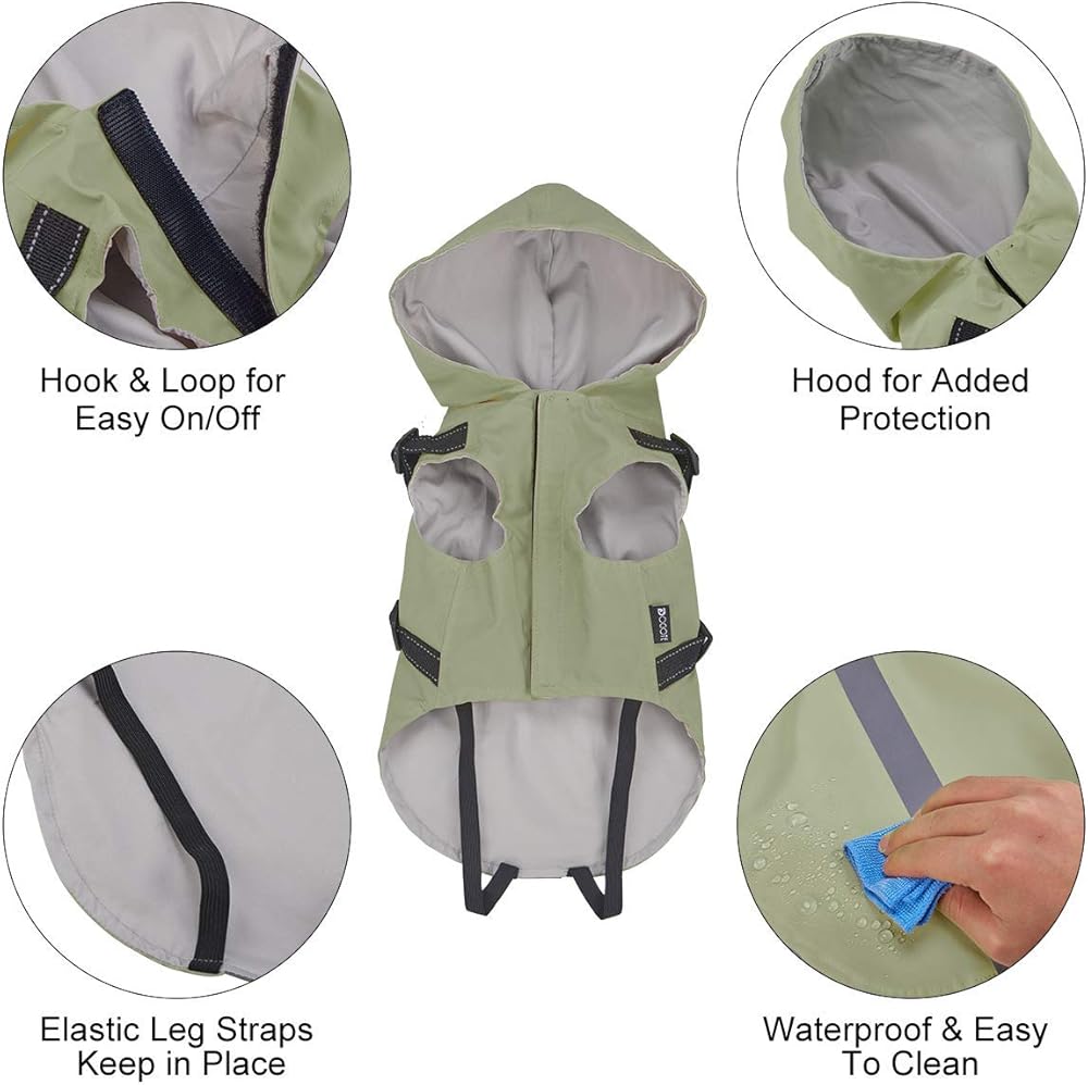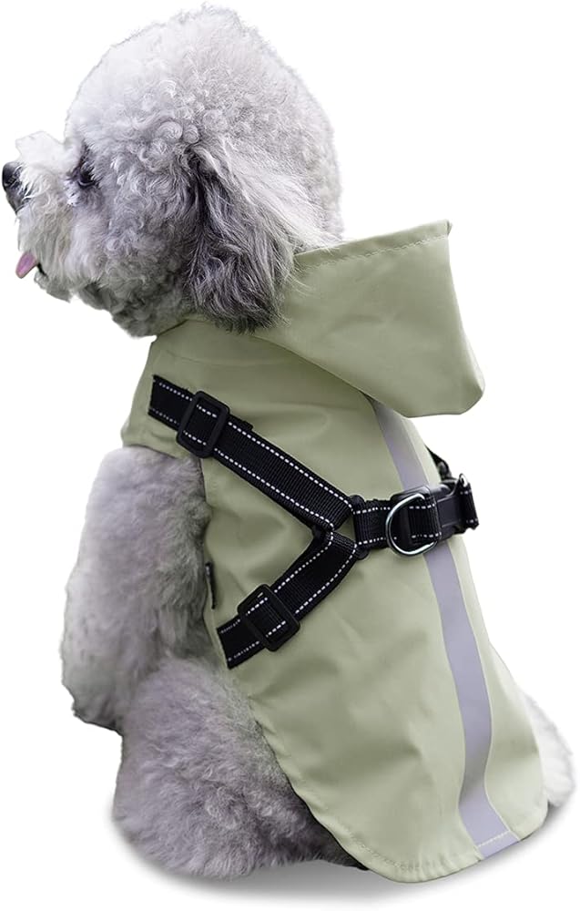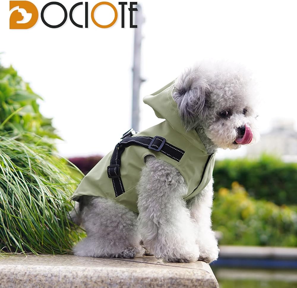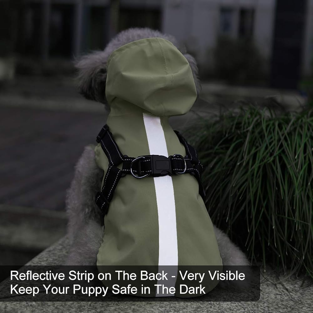 معطف واق من المطر للكلاب مع سرج - معطف مطر مقاوم للماء للكلاب مع غطاء رأس للكلاب الصغيرة - سترة مطر للكلاب الصغيرة عاكسة - خفيف الوزن ومسامي وسهل الارتداء مع خطاف وحلقة شعر غير لاصقة