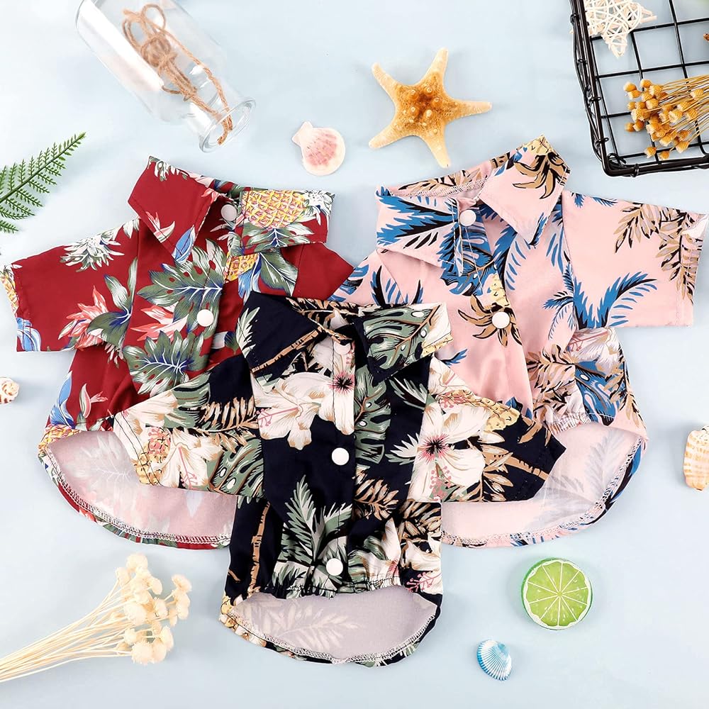 • 3 قمصان للكلاب - 3 قطع قمصان للكلاب منقوشة بالأناناس وأشجار جوز الهند متضمنة في العبوة، طراز هاواي الذي يتناسب تمامًا مع حفلات الشاطئ والصيف، 3 ألوان لتختار منها، الأحمر والأزرق الداكن والوردي، مما يوفر خيارات متعددة تتناسب مع الزي الخاص بك.