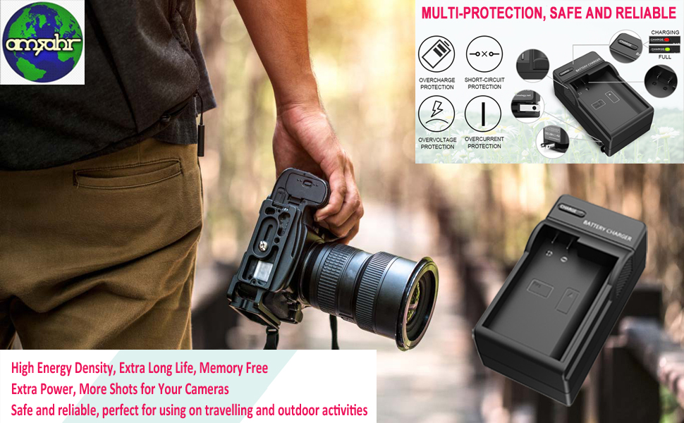 Includes ONE Compatible Smart Technology Digital Charger Cradle, Car Adapter, Cable, Wall Plug and ONE Leatherette Camera / Lens Accessories Pouch 15 X 24 Centimeters.
