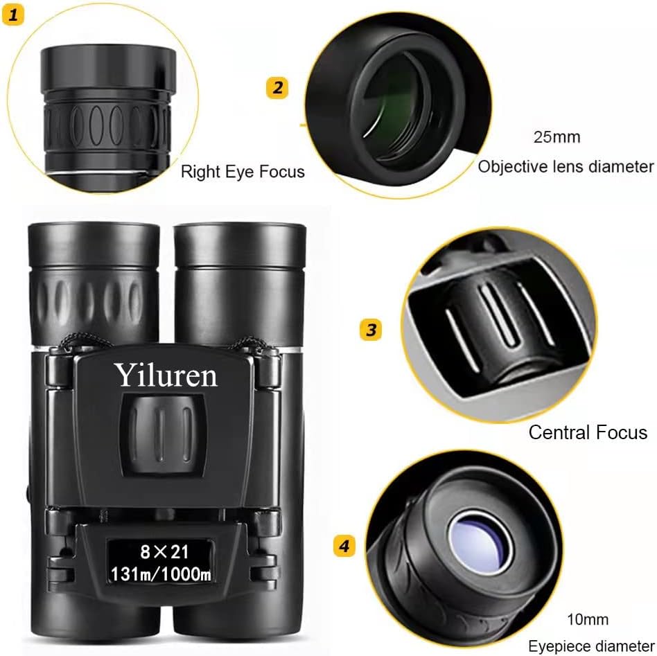 Yiluren 8x21 مصغرة قابلة للطي للطوي للحفلات الموسيقية، السفر، التسلق، المشي لمسافات طويلة، مشاهدة الطيور، مشاهدة القمر
