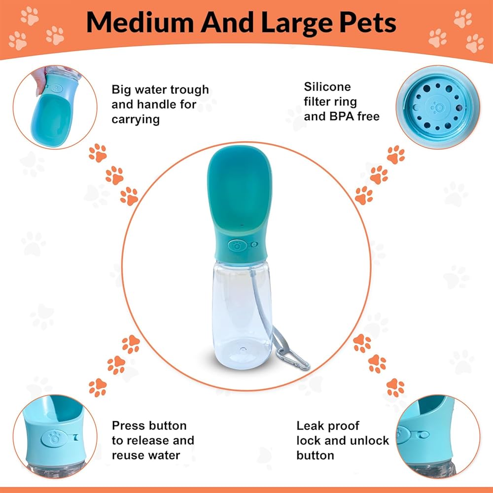 • 🐾 جودة عالية وخفيفة الوزن - تحمل ما يصل إلى 12oz من الماء للحفاظ على نشاط رفيقك أثناء الرحلات الطويلة والمشي لمسافات طويلة والمشي وما إلى ذلك.