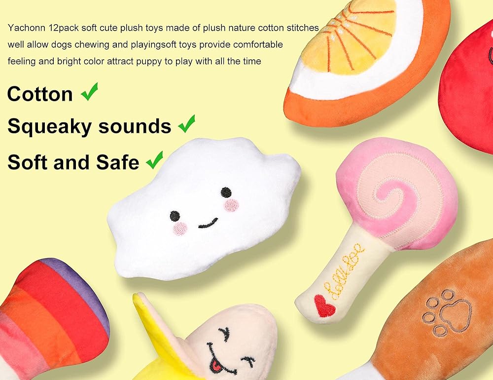 【Saft quality】yachonn 12pack soft cute plush toys made of plush nature cotton stitches well allow dogs chewing and playing, soft toys provide comfortable feeling and bright color attract puppy to play with all the time<br>
