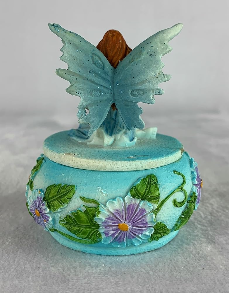 صندوق حلية على شكل جنية من Ain't It Nice مع ديكورات زهور، تمثال خيالي خيالي قابل للتجميع، أزرق، 2.5 (طول) 2.5 (عرض) 3 (ارتفاع) بوصة