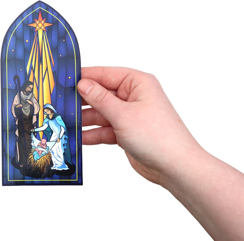 This Arched Nativity Window Cling serves as both educational Christmas decor and a powerful tool for teaching children about the birth of Jesus Christ. Featuring a stunning stained glass-style design with a simple yet meaningful Nativity scene on durable vinyl, it adds a touch of beauty and spirituality to your surroundings. Applying these clings to most glass surfaces is a breeze, and their removable and reusable nature makes them a practical and cost-effective choice. Beyond their decorative appeal, these clings are ideal for sharing the religious message during Christmas events, making them a perfect addition to church services, school classrooms, or gatherings where the true meaning of the season is celebrated and cherished.