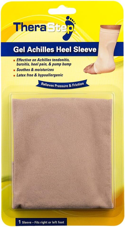 The gel Achilles heel sleeve is a comfortable, toeless sleeve that protects the Achilles area, helping to relieve Achilles tendonitis, bursitis, heel pain, & pump bump. The soft sleeve is made of a stretchable, lightweight fabric molded with a gel pad.