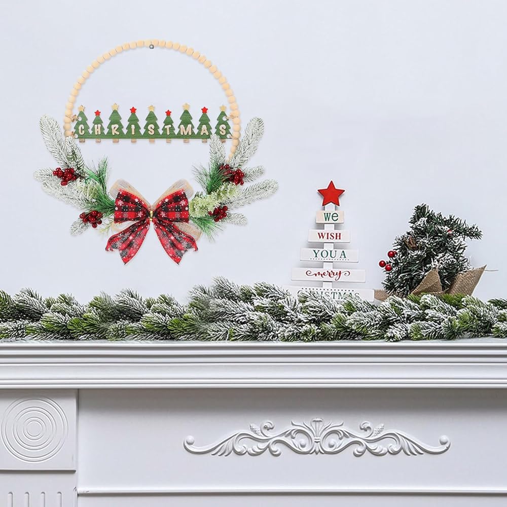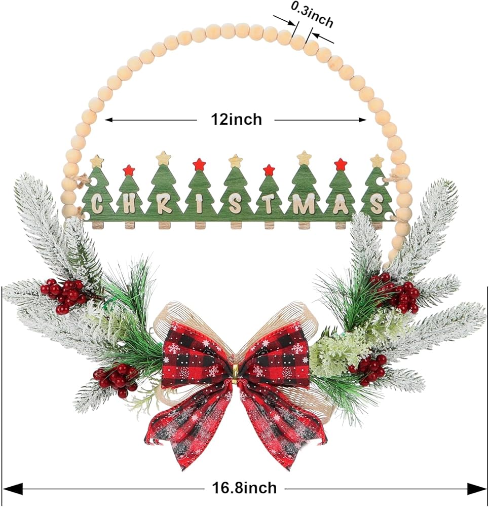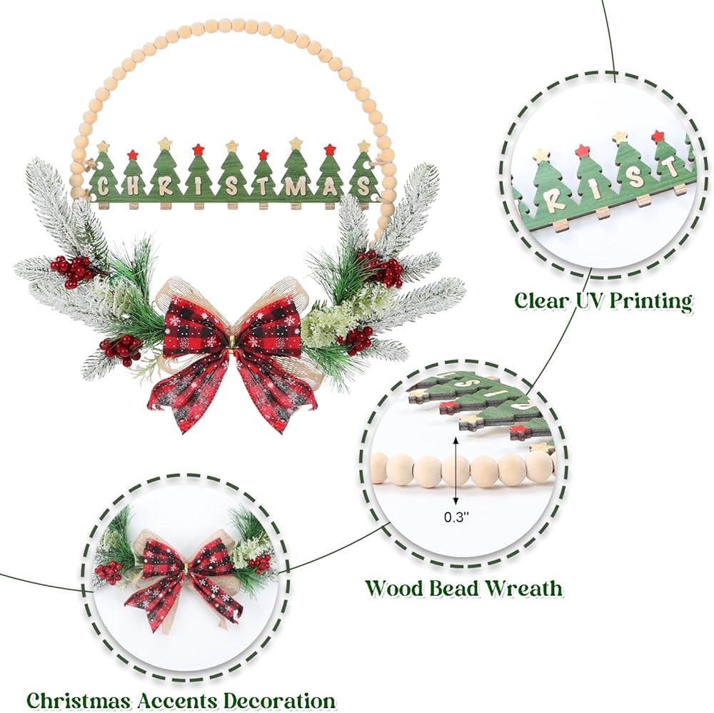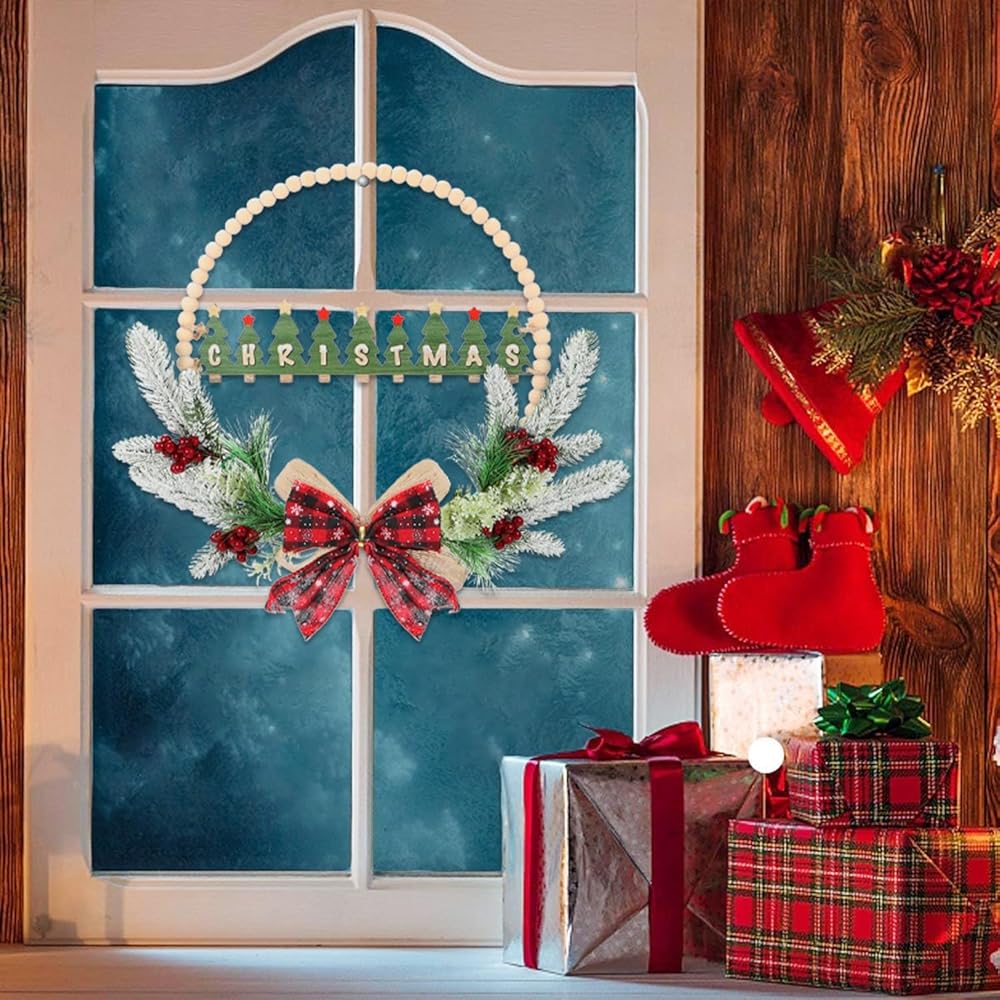 • 👍إكليل خرز خشبي لعيد الميلاد بتصميم ثلاثي الأبعاد رائع👍----لافتة باب عيد الميلاد ثلاثية الأبعاد بأوراق هولي صناعية وإبر الصنوبر والتوت تخلق جوًا ساحرًا وجذابًا، مما يضع نغمة خفيفة للضيوف حتى قبل دخولهم إلى الداخل. إكليل عيد الميلاد المجيد مصنوع جيدًا، والمواد عالية الجودة المستخدمة تجعله متينًا بما يكفي لتحمل الظروف الخارجية.