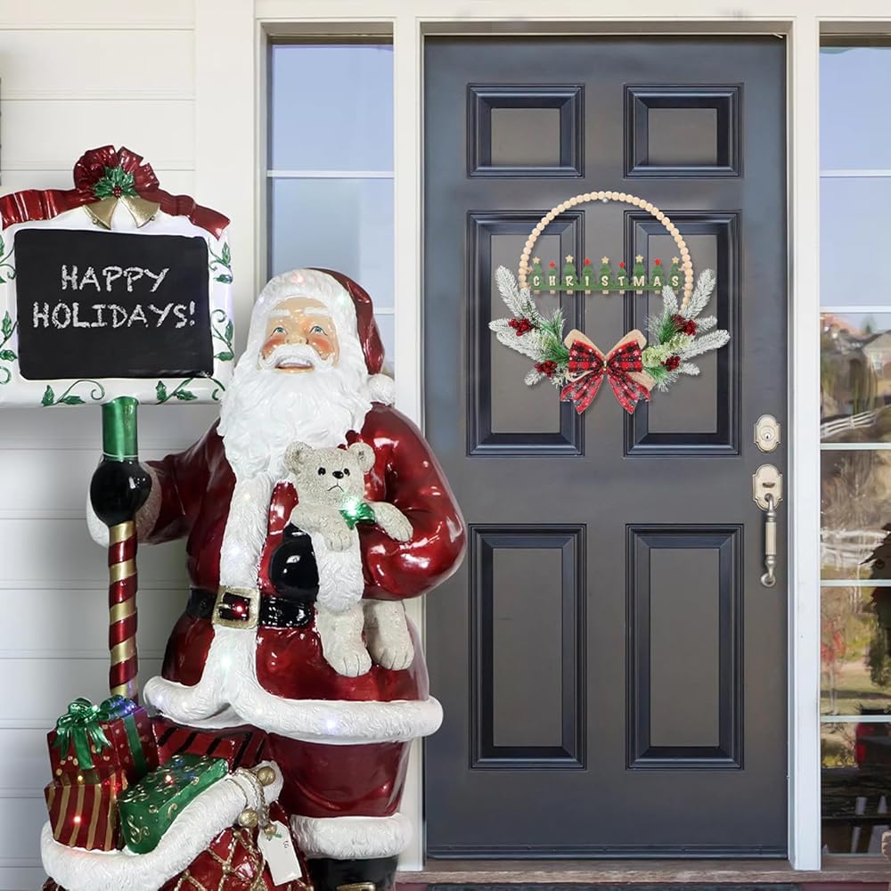 • 🌳مصنوعة من مادة خشبية صناعية🌳-- قياس 17 بوصة، لافتة التعليق على شكل إكليل الترحيب بعيد الميلاد مصنوعة من مادة خشبية أكثر سمكًا وأقوى. آمن ومتين للاستخدام، وواقي من الشمس ومضاد للبهتان. يمكن استخدامه لفترة طويلة.