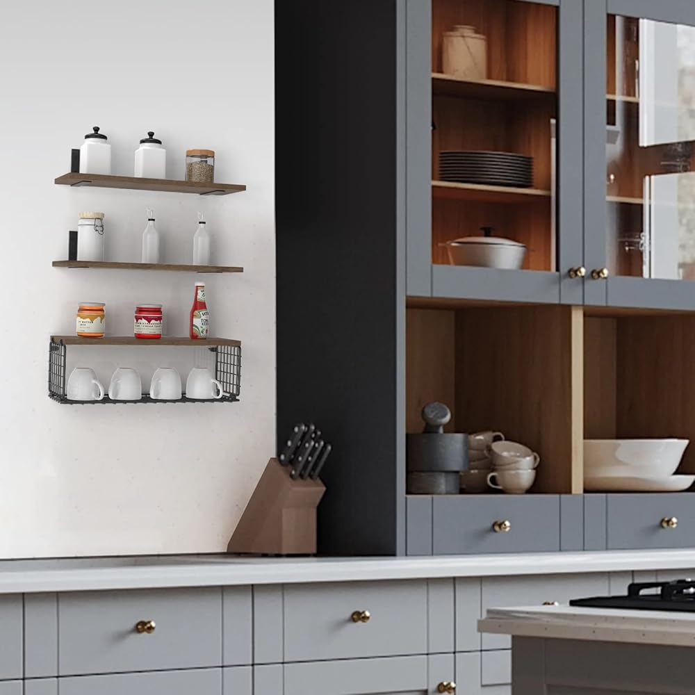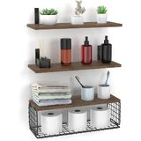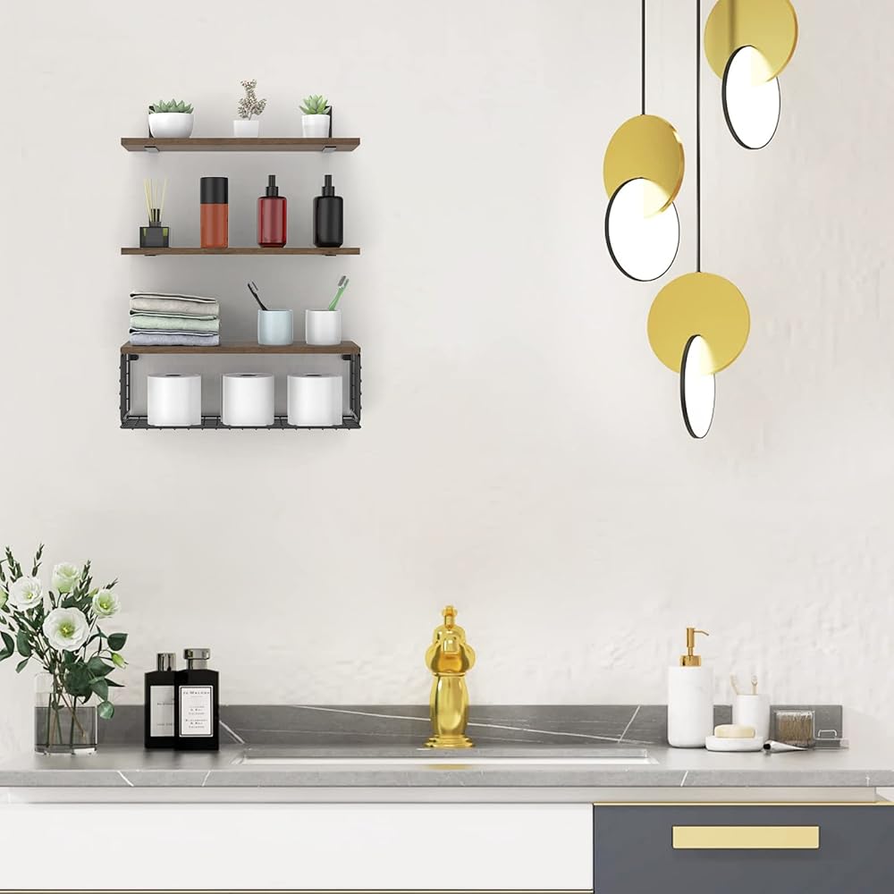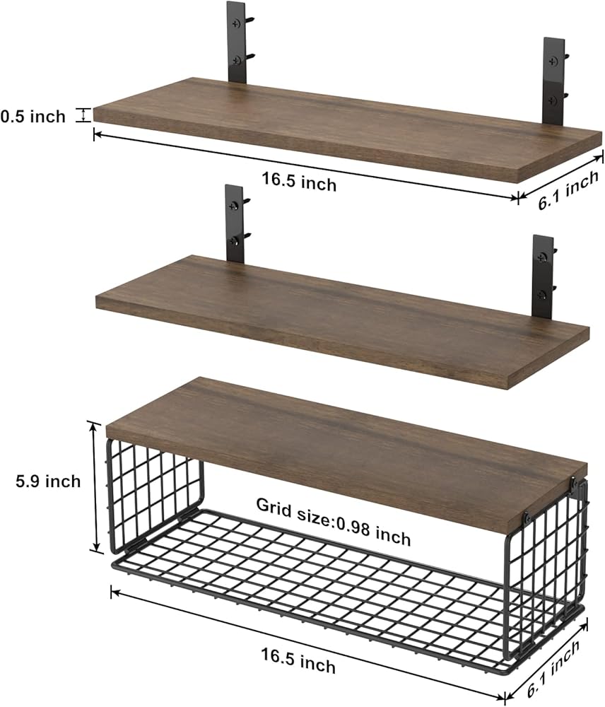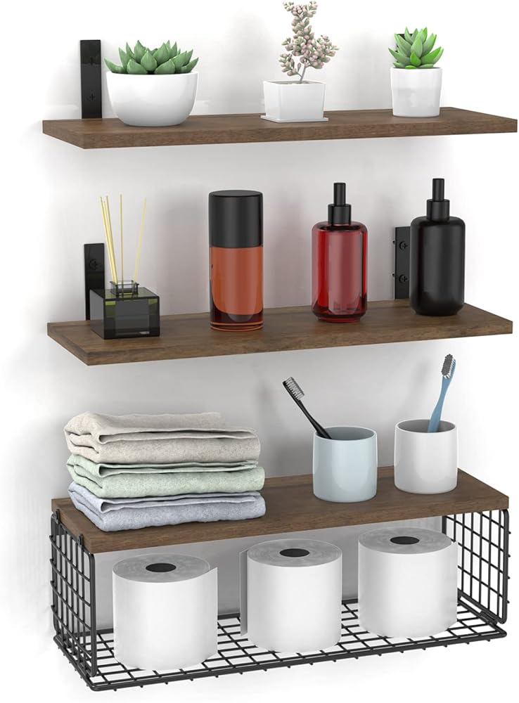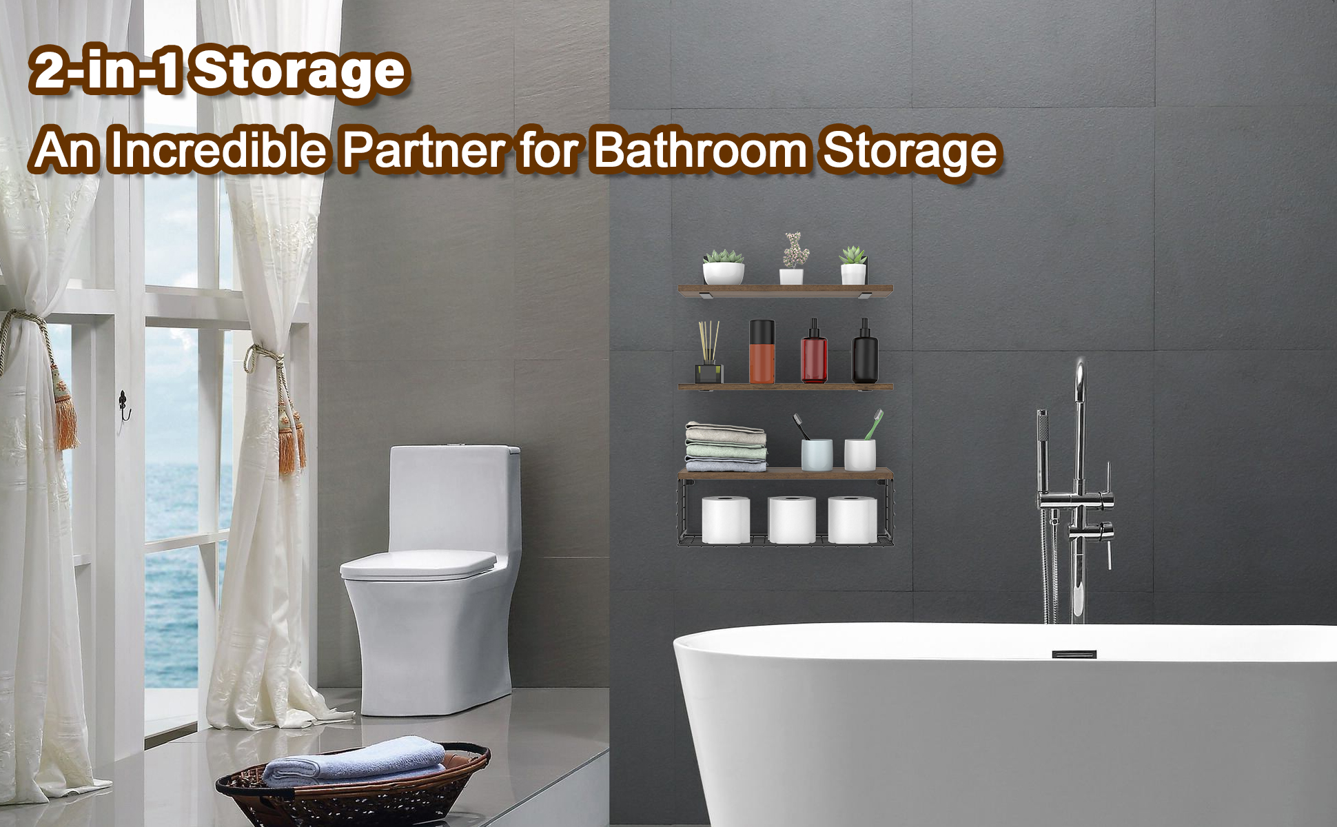 【أرفف عائمة مع سلة ورقية】حجم سلة الرف العائمة هو 16.5 × 6 × 5.5 بوصة، والتي يمكنها تخزين ورق المرحاض والأشياء الصغيرة والمناشف. سلة تخزين أرفف الحمام الجدارية الخاصة بنا مصنوعة من سلك مع لمسة نهائية مطلية بالمسحوق للحصول على لمسة نهائية خالية من الصدأ وأكثر متانة ومناسبة للبيئات الرطبة. تعمل هذه الأرفف العائمة الريفية بتصميم شبكي على تقليل تراكم الغبار والحفاظ على ورق التواليت نظيفًا وجافًا.