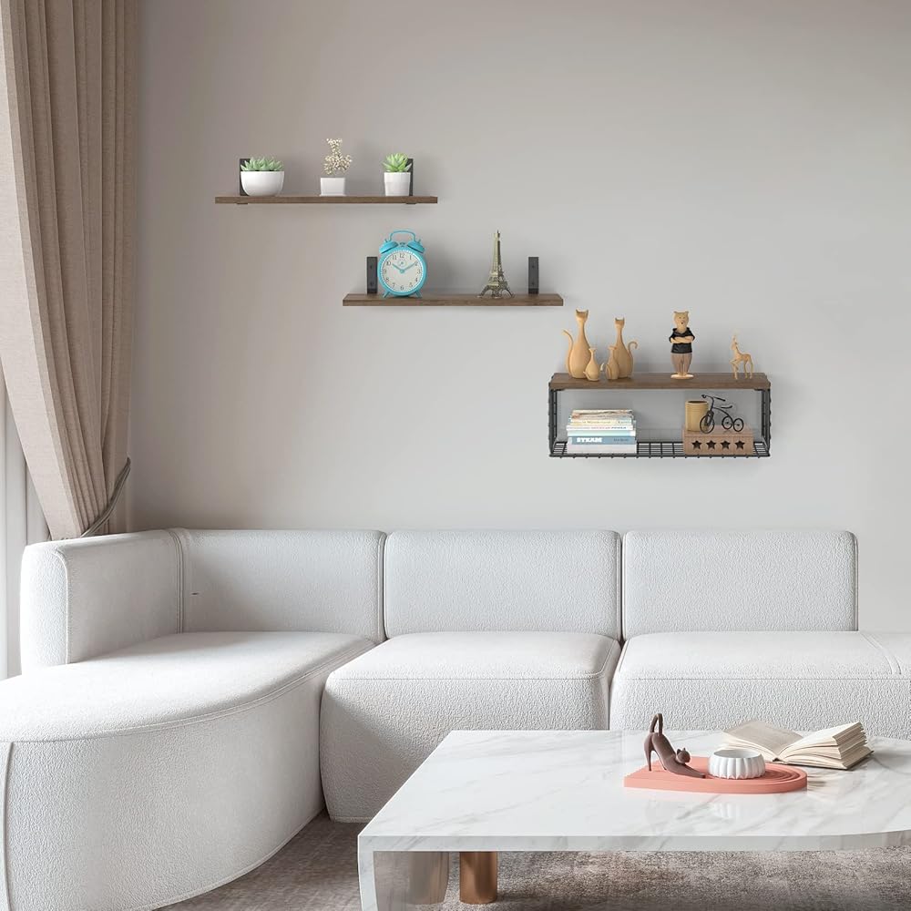 【أرفف متعددة الوظائف】تبلغ أرفف ديكور الحائط لدينا 16.5 × 6 × 0.6 بوصة وتوفر مساحة تخزين إضافية أينما كنت في حاجة إليها، لذلك يمكنك استخدامها كرف زاوية ورف كتب ورفوف حائط للقطط. أدوات الزينة ومنتجات الحمام والمكياج والعطور والعلب والكتب والألبومات والجوائز والحرف اليدوية وما إلى ذلك. يمكن وضعها في الأعلى للتنظيم والديكور. هذه الأرفف العائمة الريفية مناسبة أيضًا لأسلوب المزرعة الحديث، والنمط الصناعي التقليدي، والحد الأدنى العتيق الاسلوب، الخ.
