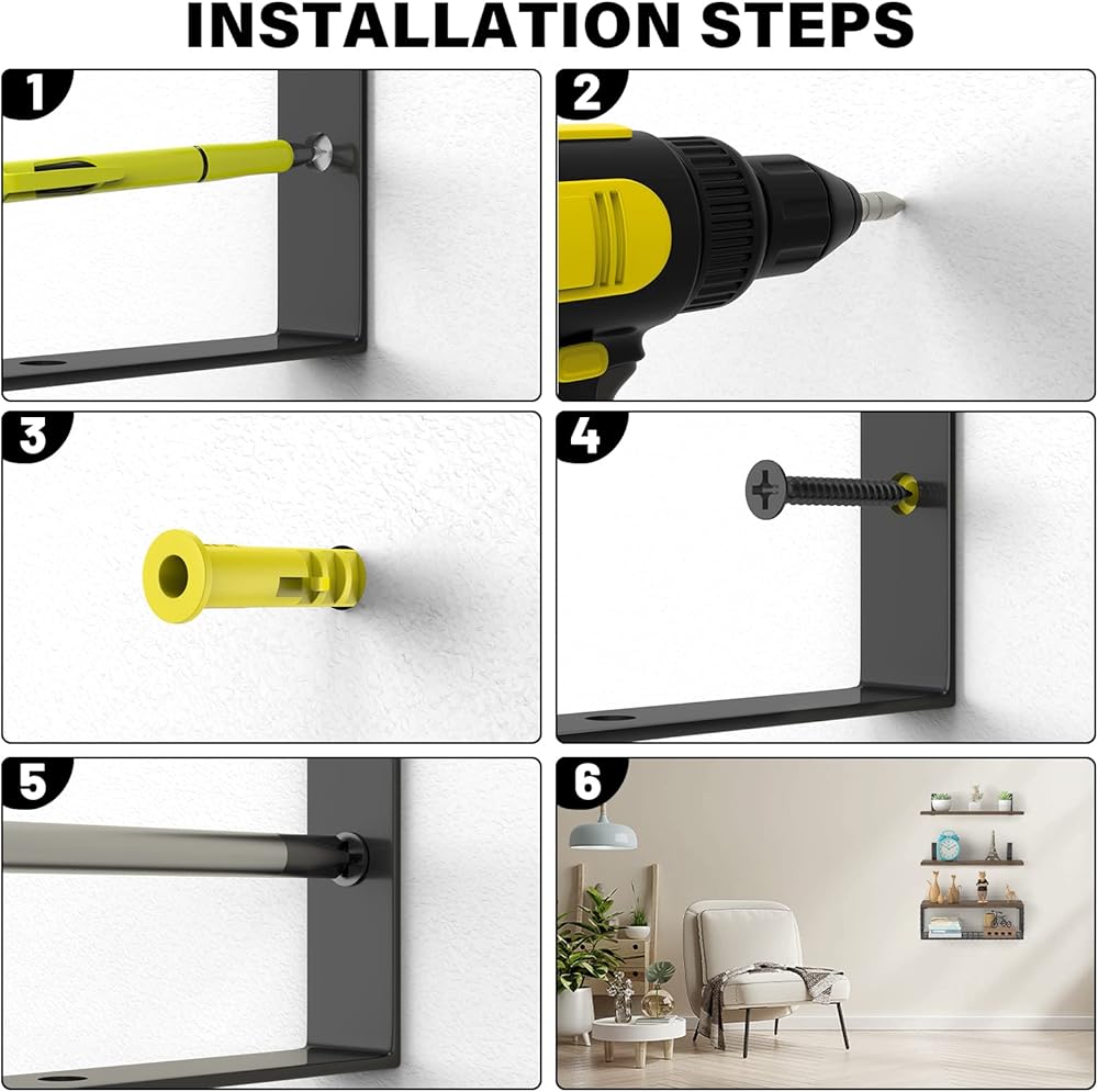 【سهلة التركيب ومتينة】جميع الأجهزة الضرورية متضمنة في الأرفف الخشبية العائمة، فقط اتبع التعليمات المقدمة ويمكنك الانتهاء من التجميع في دقائق. تتميز الدعامات المعدنية على شكل حرف L بأنها متينة بسعة 40 رطل، لذلك لا داعي للقلق بشأن سقوطها. نصائح: للحصول على أفضل نتائج التثبيت، نوصي بإبقاء الظفر بعيدًا عن الحائط بمقدار 0.1 بوصة.