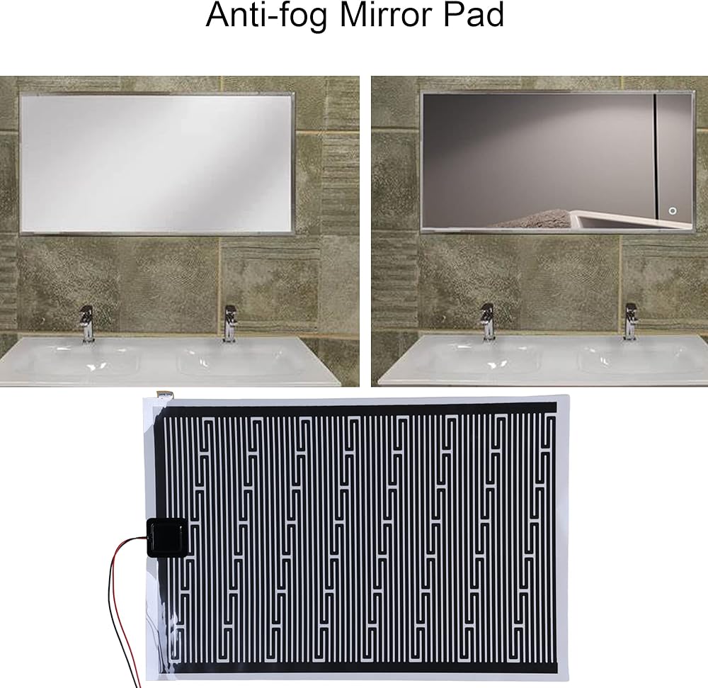 وسادة مرآة خالية من الضباب: حوّل المرآة المعلقة إلى مرآة مضادة للضباب في دقائق. هذه الوسادة بمقاس 24 × 16 بوصة، 120 فولت تيار متردد، 40 وات ومصنوعة للمرايا المستطيلة.
