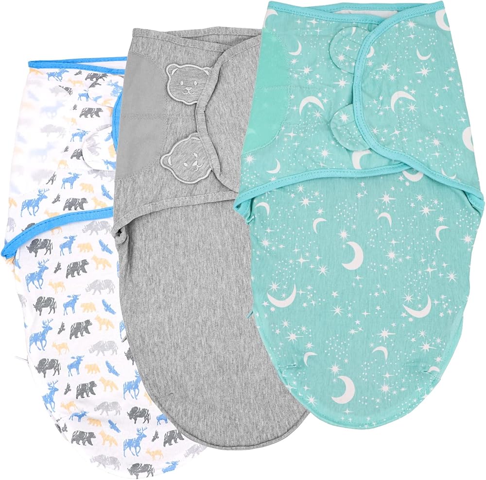 هدية مثالية - تتميز لفافة القميط الخاصة بنا للأعمار من 0 إلى 3 أشهر بثلاثة تصميمات لطيفة عملية ومريحة، مما يجعلها عنصرًا أساسيًا لكل طفل وهدية مثالية لآباء الأطفال حديثي الولادة.