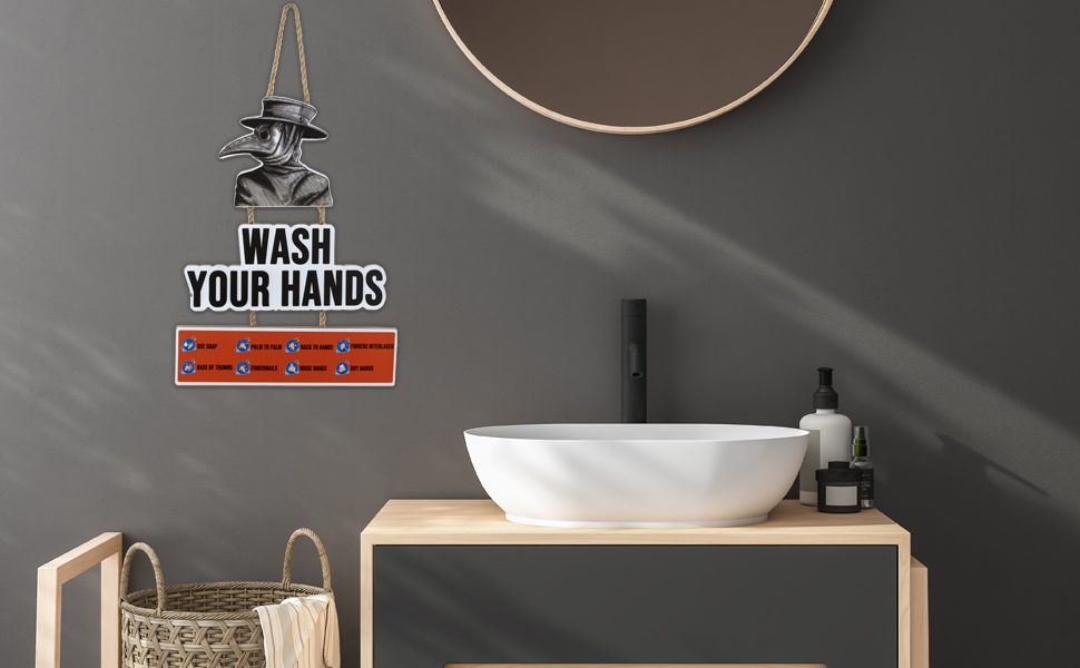 • USAGE:The plague doctor wash your hands sign can be displayed on various occasions, such as on walls, doors, bathroom, restroom, laundry room, living room, office and more places.You can also choose this wood sign to your family or friends as a gift.