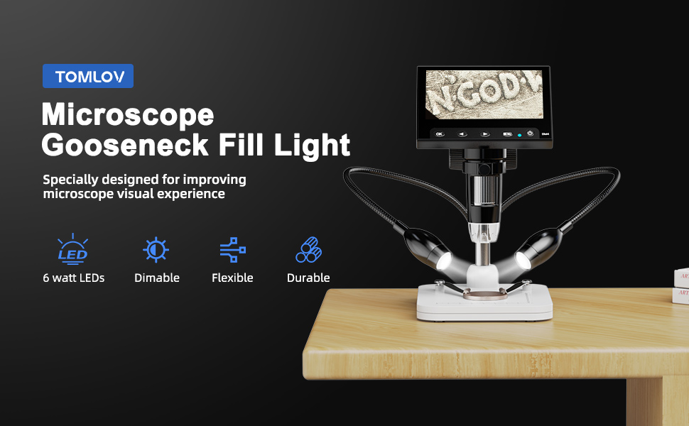TOMLOV مجهر رقمي معقوفة LED أضواء ملء GL06، أضواء كاشفة مساعدة من الألومنيوم بقدرة 6 وات مع مفتاح قابل للتعتيم، سطوع قابل للتعديل، متوافق مع جميع مجاهر LCD