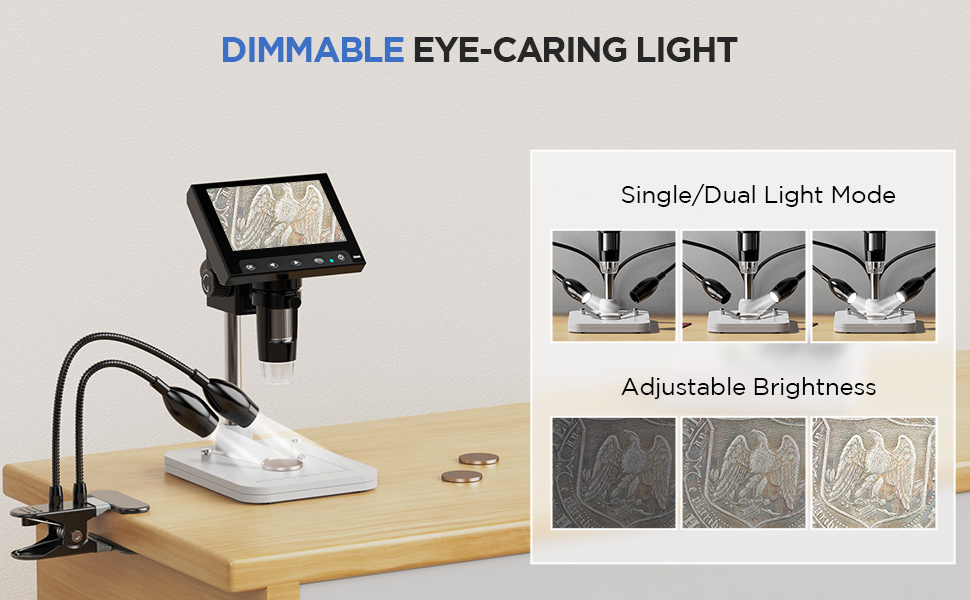 【مشبك قوي مع وسادة مضادة للانزلاق】المجهر الرقمي مجهز بمشبك قوي يتميز بلوحة مضادة للانزلاق، مما يضمن تثبيتًا آمنًا على الأسطح المختلفة ويعزز تحديد موضع ثابت ودقيق أثناء الملاحظات.