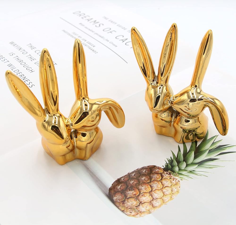 يناسب مجسم الأرنب الذهبي هذا سطح الطاولة أو غرفة المعيشة. إنها أدوات فنية رائعة لتزيين منزلك.