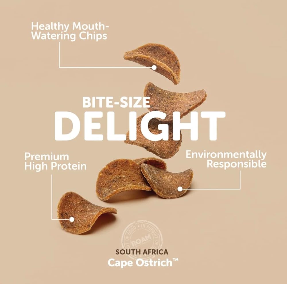 • بروتين واحد - مصنوعة من لحم النعام الفاخر، هذه الرقائق رائعة للتدريب، ومسؤولة بيئيًا، ولذيذة بشكل لا يصدق!